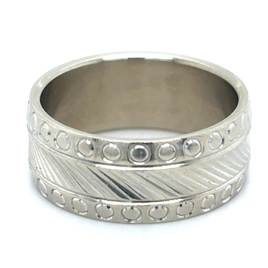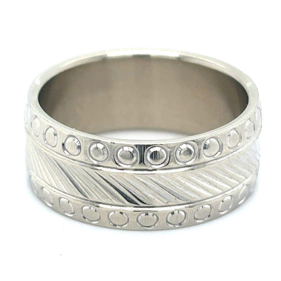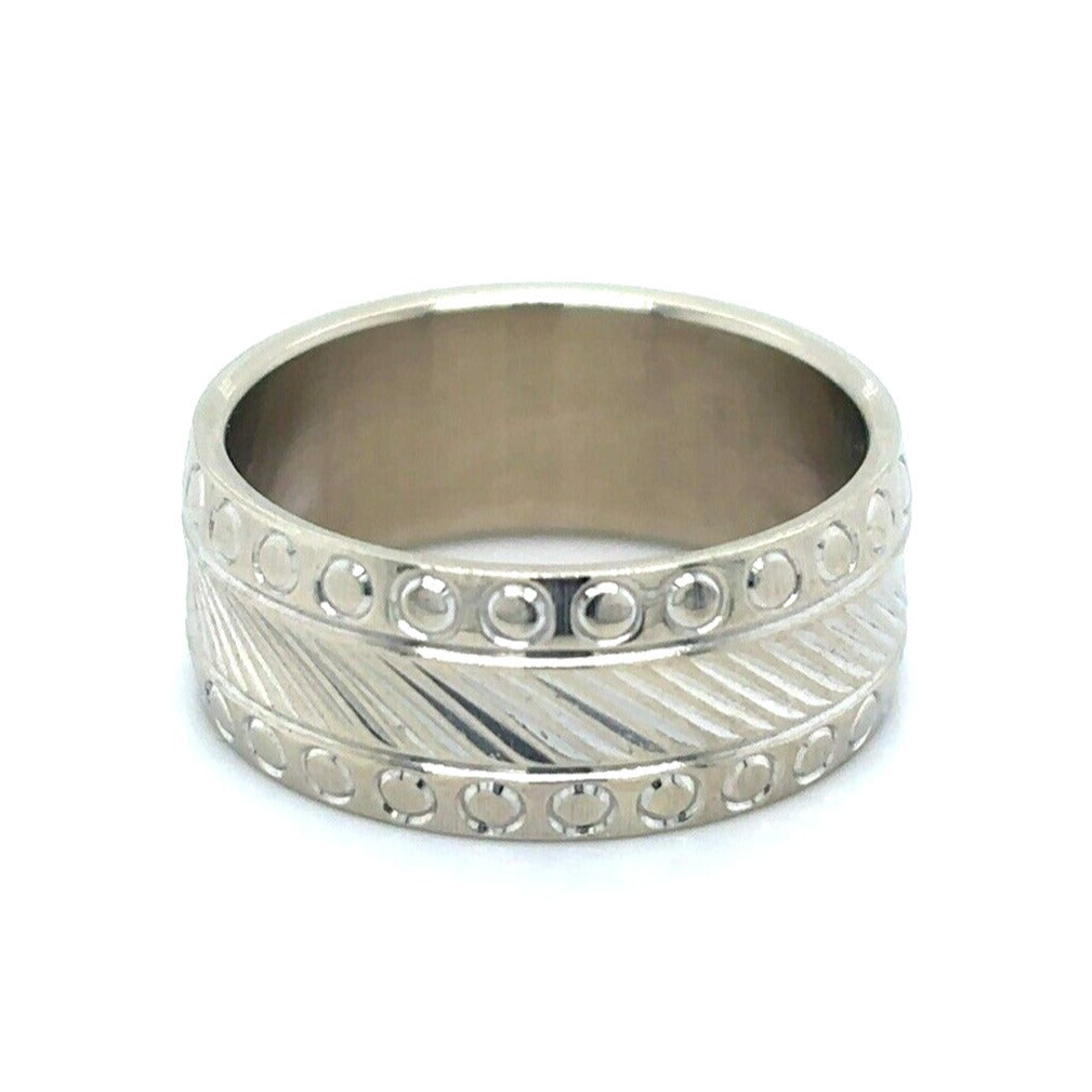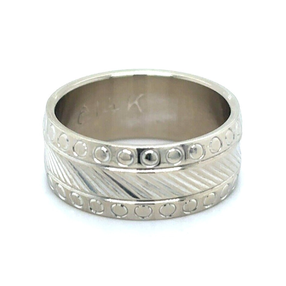 6.9 mm Etched Wedding Band 14k White Gold 5.0g Size 4.5