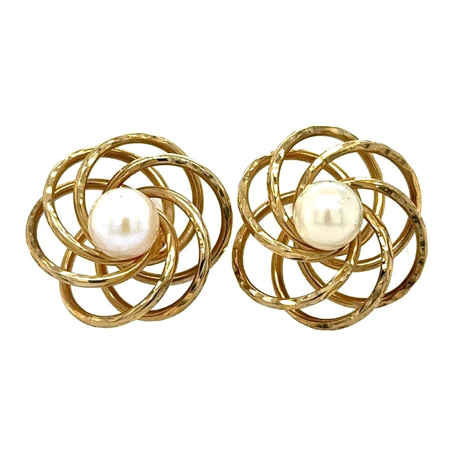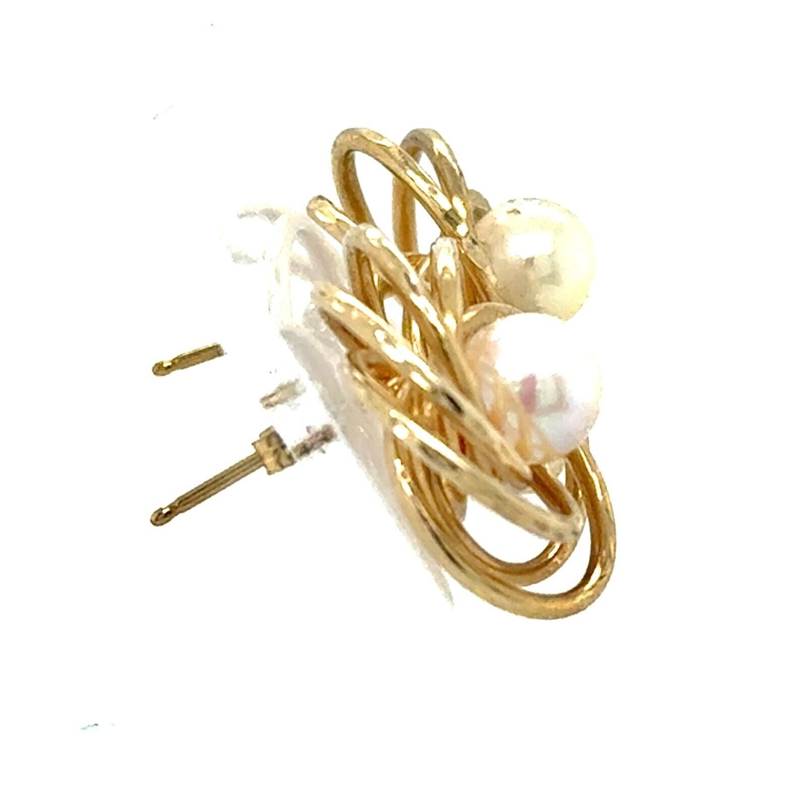 6mm Pearl 14k Yellow Gold Stud Flower Earrings 3.1g