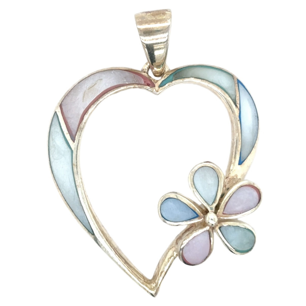 .925 Sterling Silver Heart and Flower Pendant 18.2g