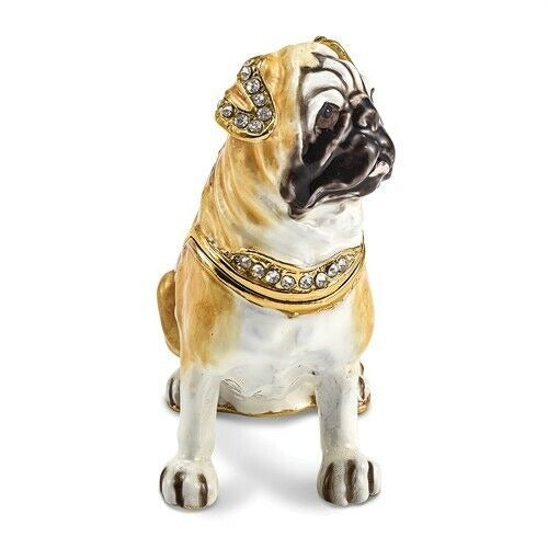Bejeweled Pug Dog Trinket Box With Gold-Tone Finish & Rhinestones