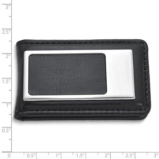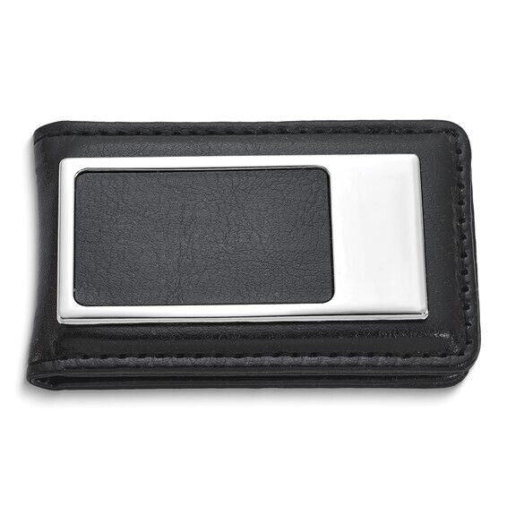 Black Faux Leather Magnetic Nickel-plated Money Clip
