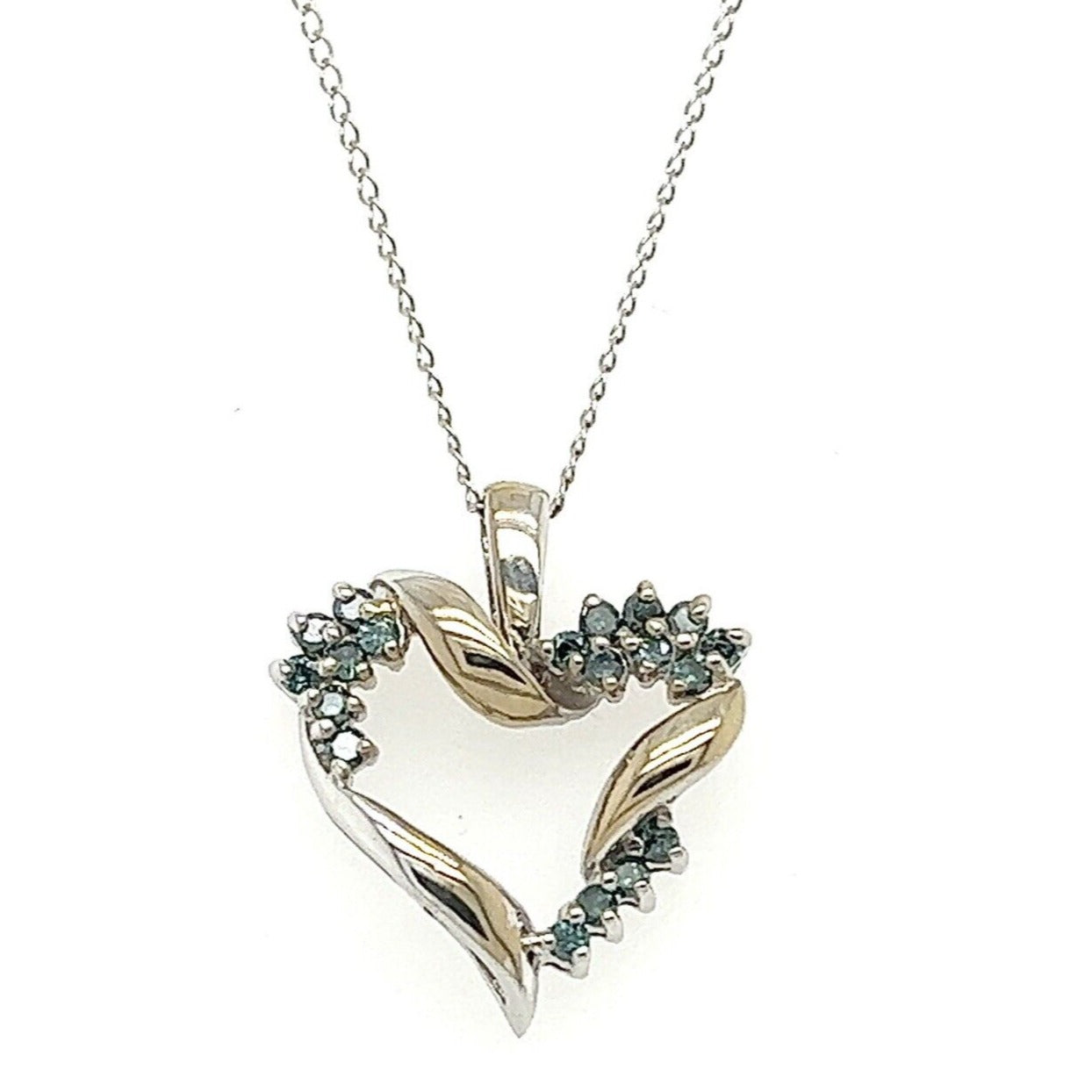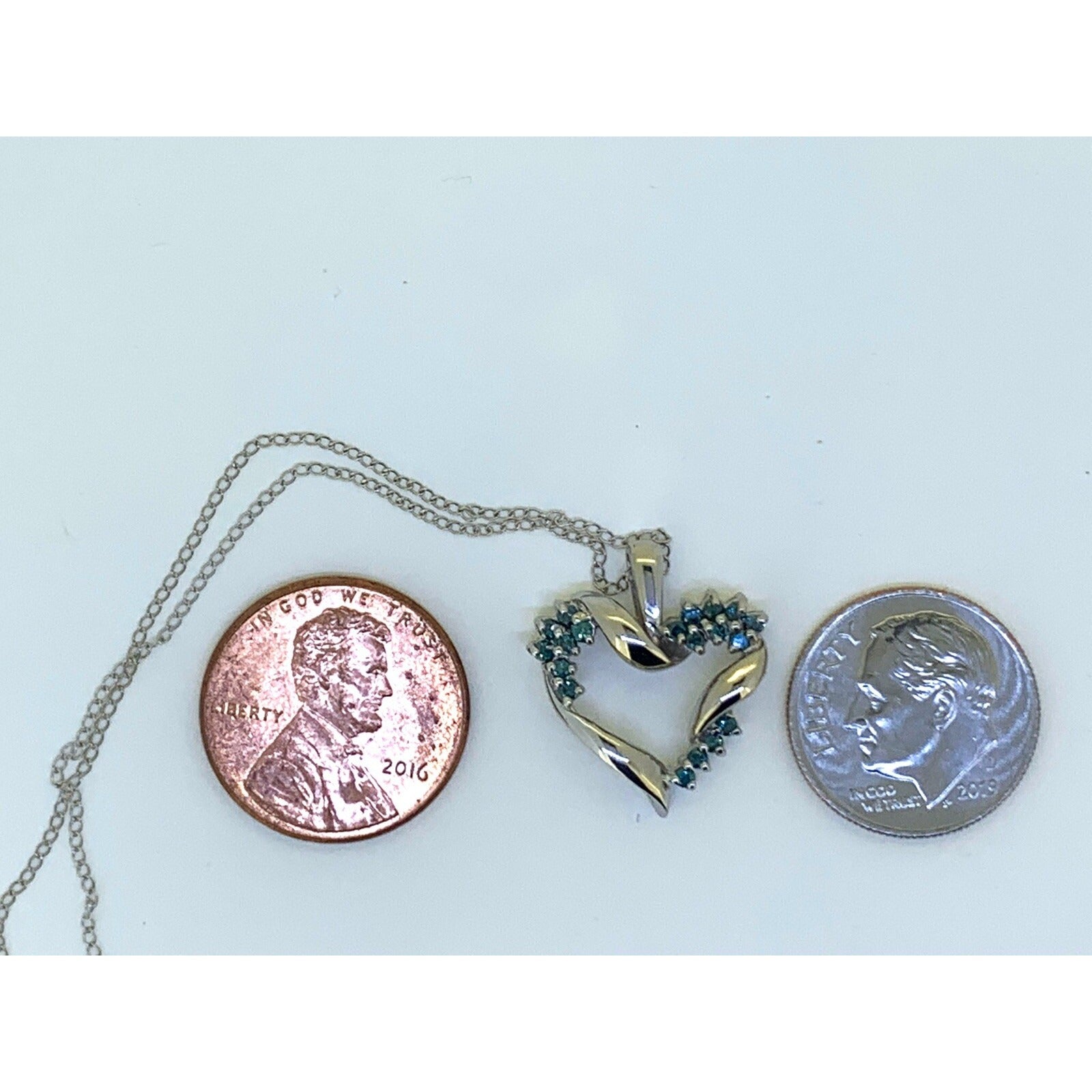 Blue Diamond Heart Pendant 16" chain 14k White Gold 2.9g
