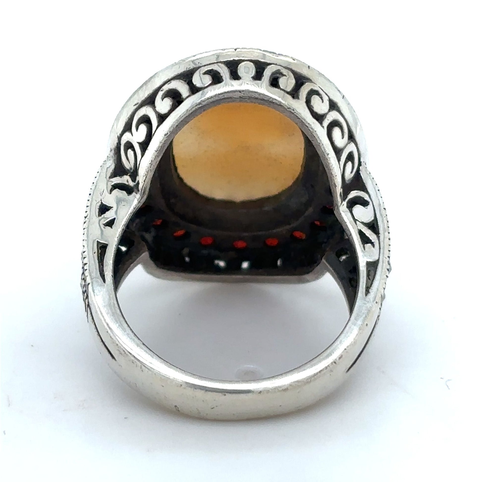 Cameo Solitaire & Garnet Sterling Silver Ring 9.4g Size 6