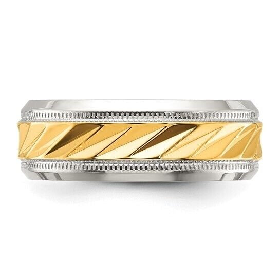Chisel Titanium Polished Yellow IP-plated Grooved Center 8mm Band Ring Size 10