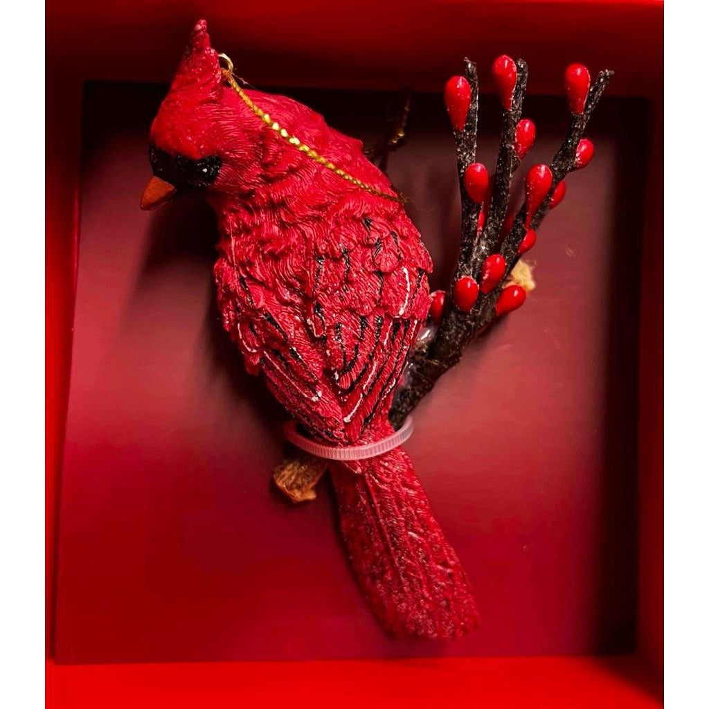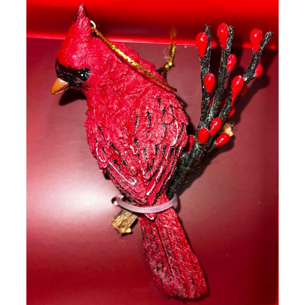 Christmas Cardinal on Branch Ornament Click images to enlarge