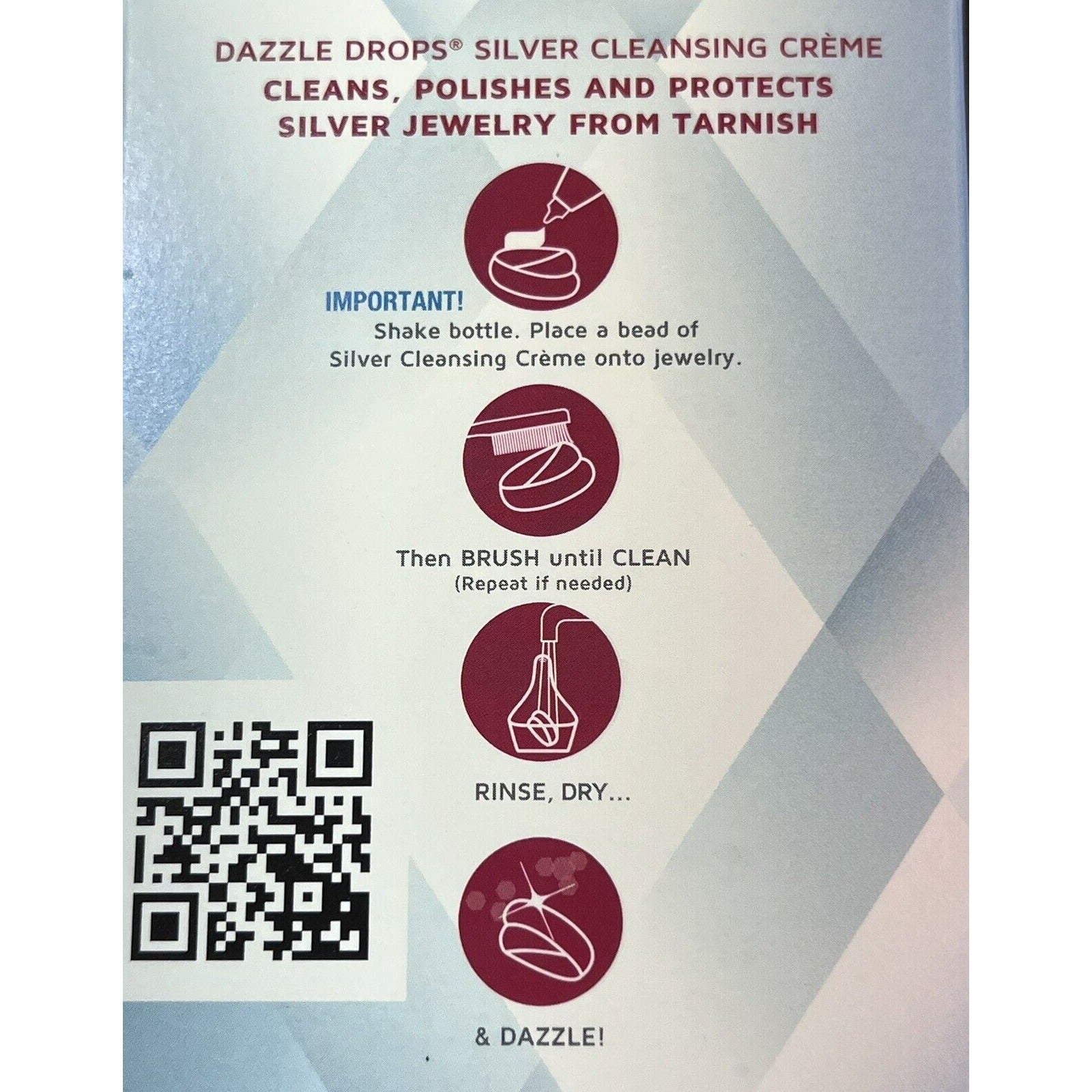 Cleans Sterling Silver, Sliver Plate & Silver With Gemstones. Pleasent Scent, Easy to use and Non Toxic People, Pets And The EnvironmentA fresh solution for your dull silver jewelry every time. The Dazzle Drops Silver Crème is polish for your silver jewelry.