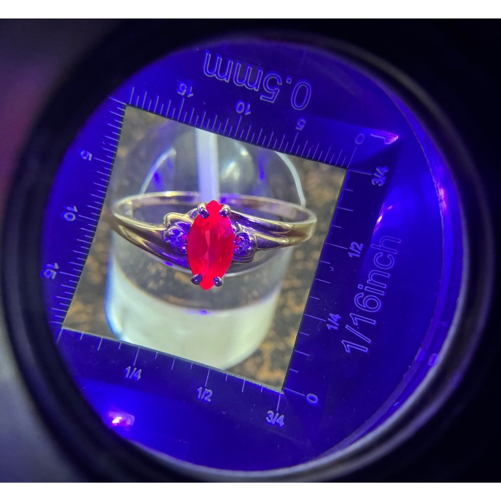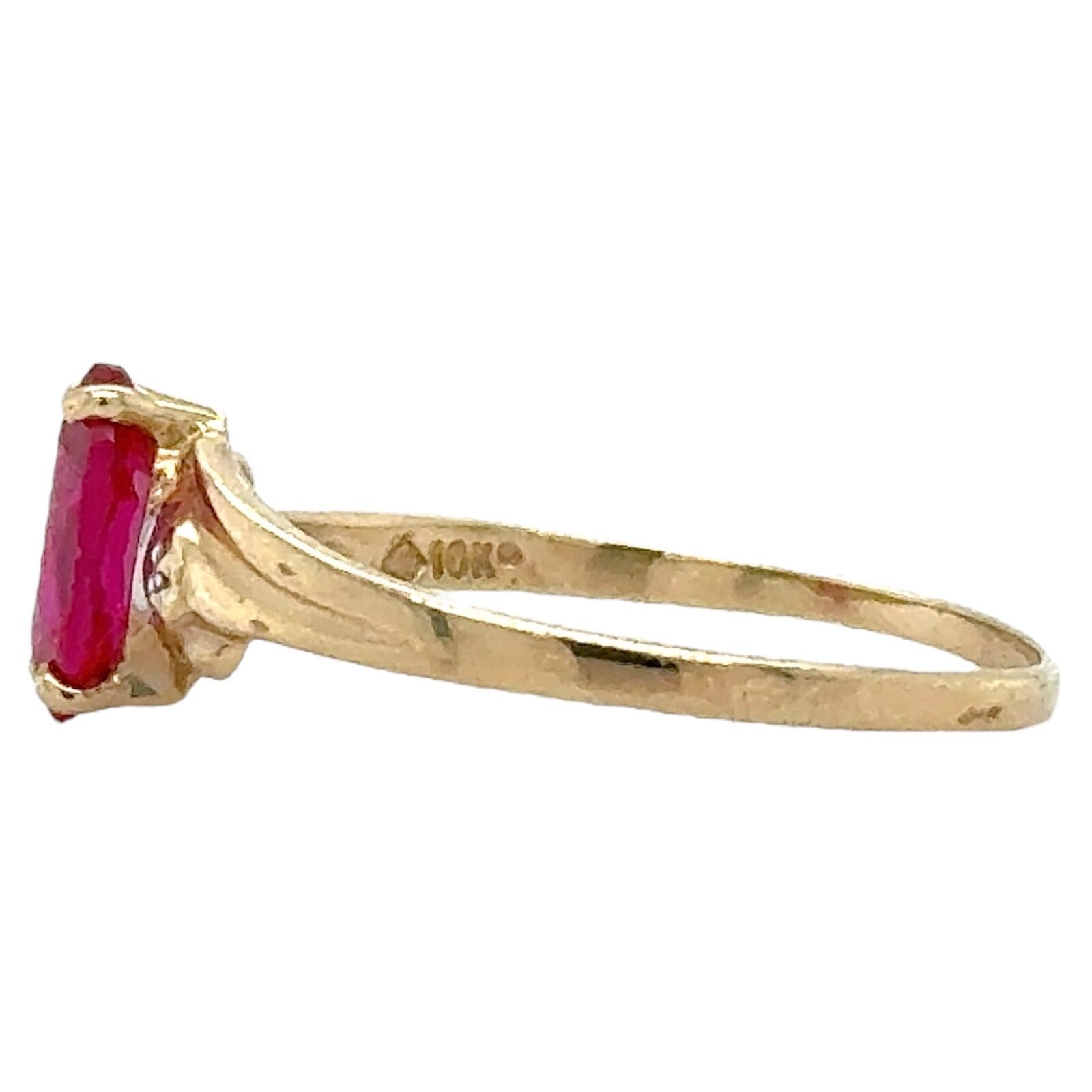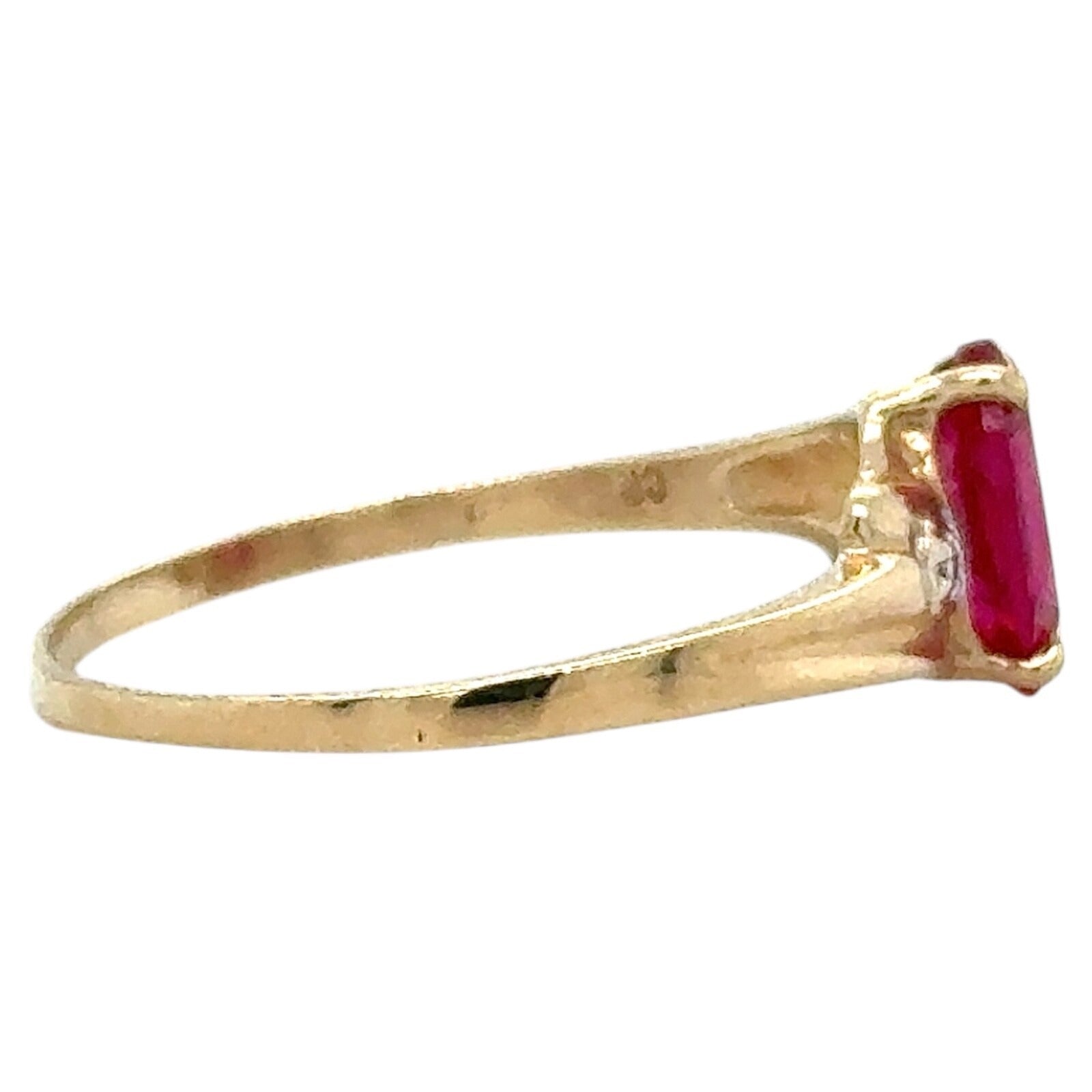 Created Ruby Solitaire & Diamond 10k Yellow Gold Ring 1.3g Size 8.25