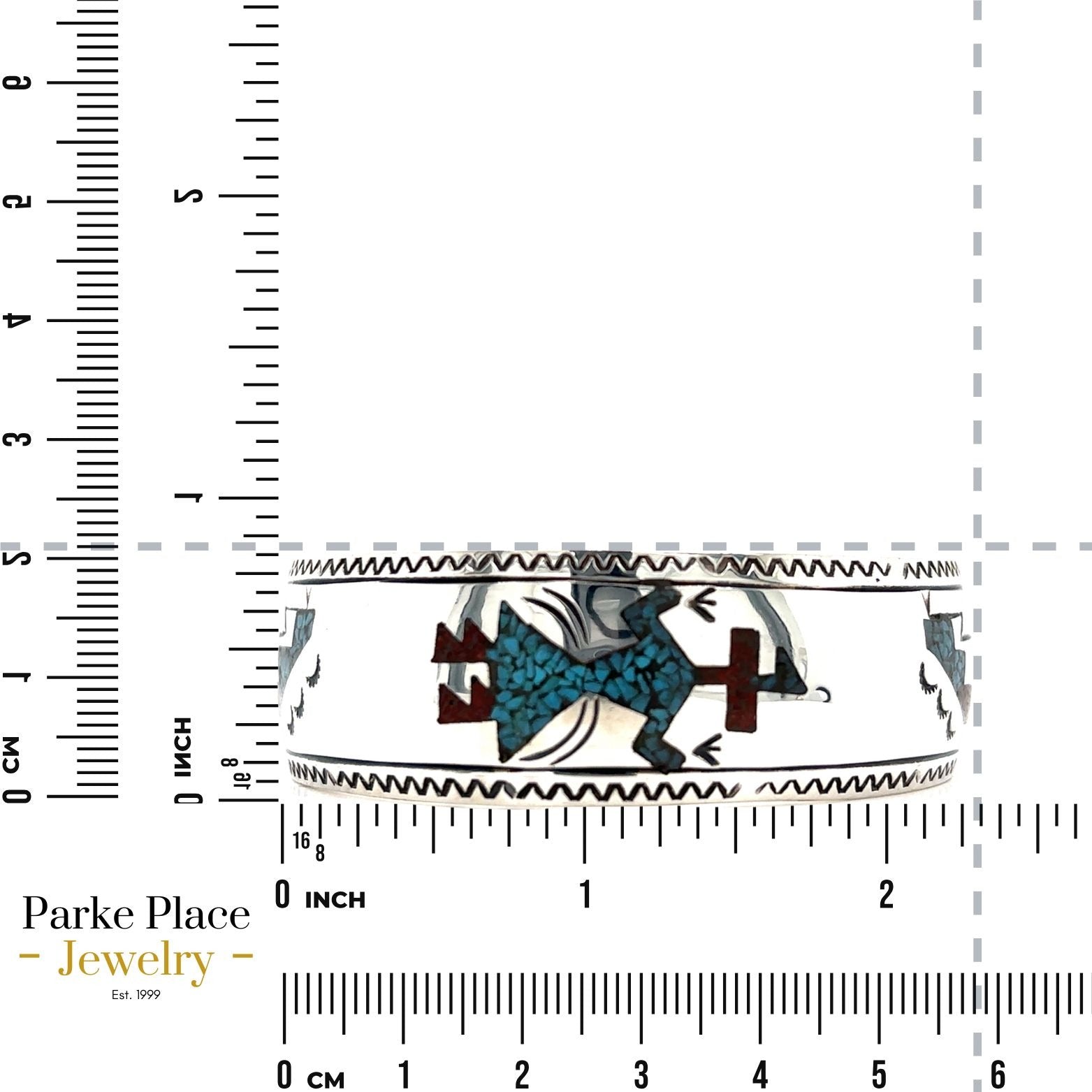 This exquisite cuff bracelet showcases vibrant crushed turquoise and coral inlays set in genuine .925 sterling silver. Weighing 13.9 grams, this piece combines elegance and artistry, making it a perfect accessory for any occasion. Ideal for those who appreciate unique, handcrafted jewelry.
