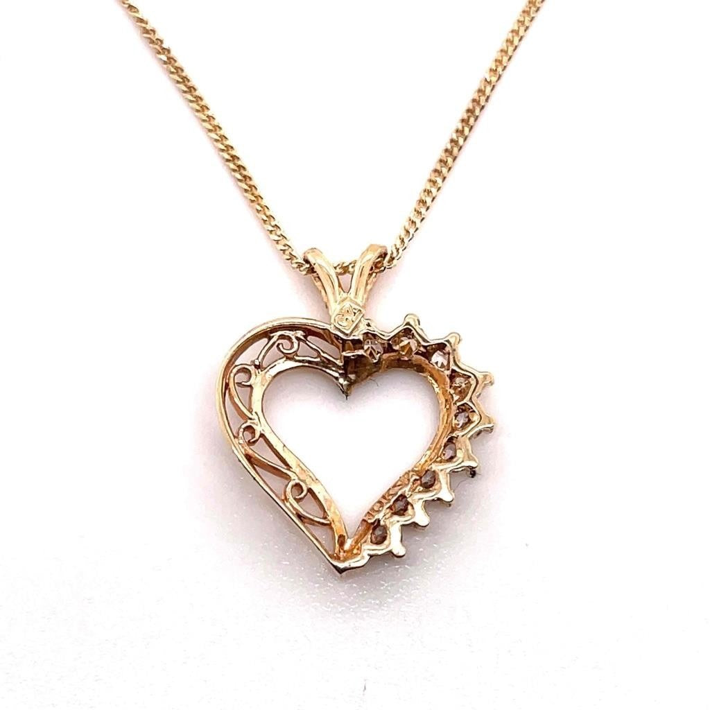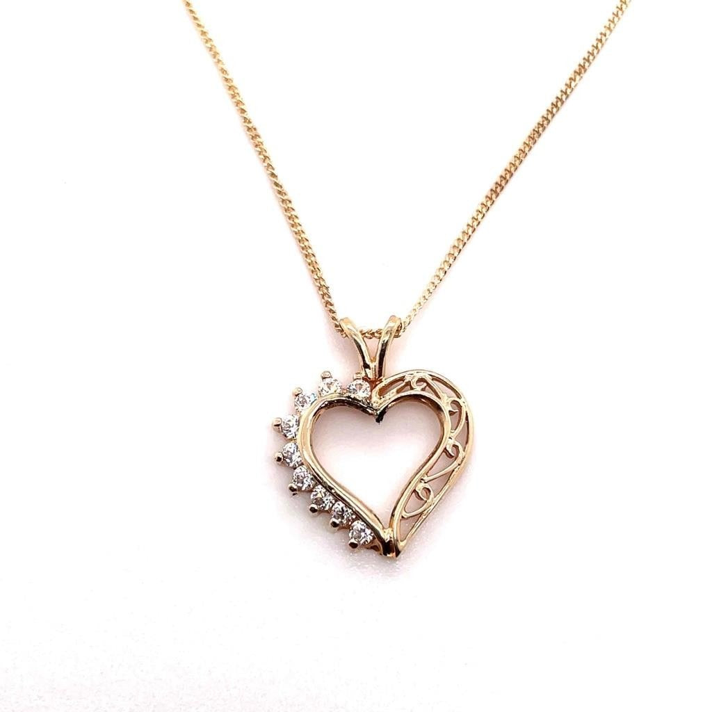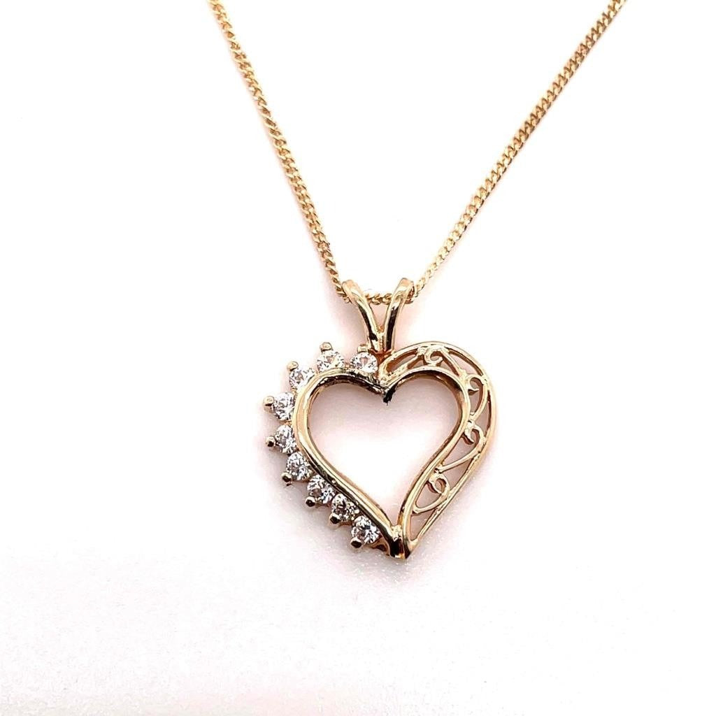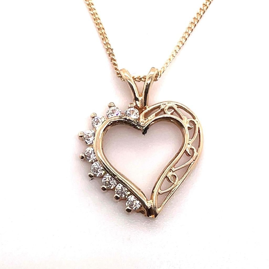 Cubic Zirconia Heart Pendant with 18 inch Chain REAL Solid 10k Yellow Gold 2.0g