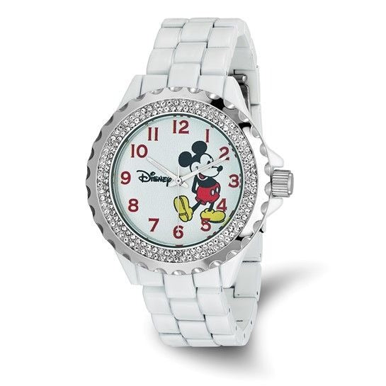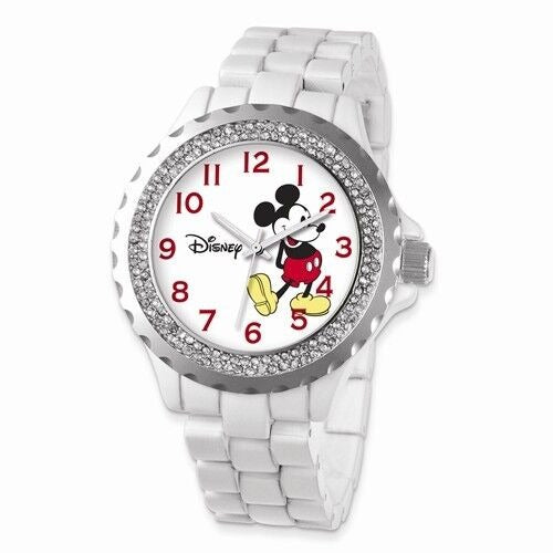 Disney Adult Size White Band With Crystal Bezel Mickey Mouse Watch