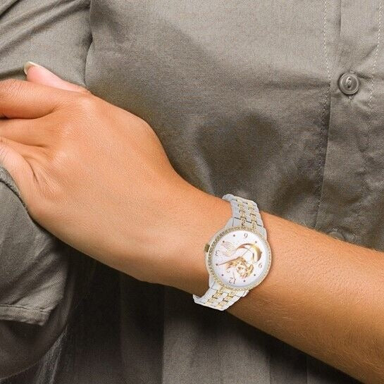 Embrace your Disney fandom with this elegant and enchanting two-tone watch inspired by The Little Mermaid. Featuring a crystal bezel and a stylish design, this watch is a perfect blend of fantasy and fashion, making it an ideal accessory for any Disney enthusiast.