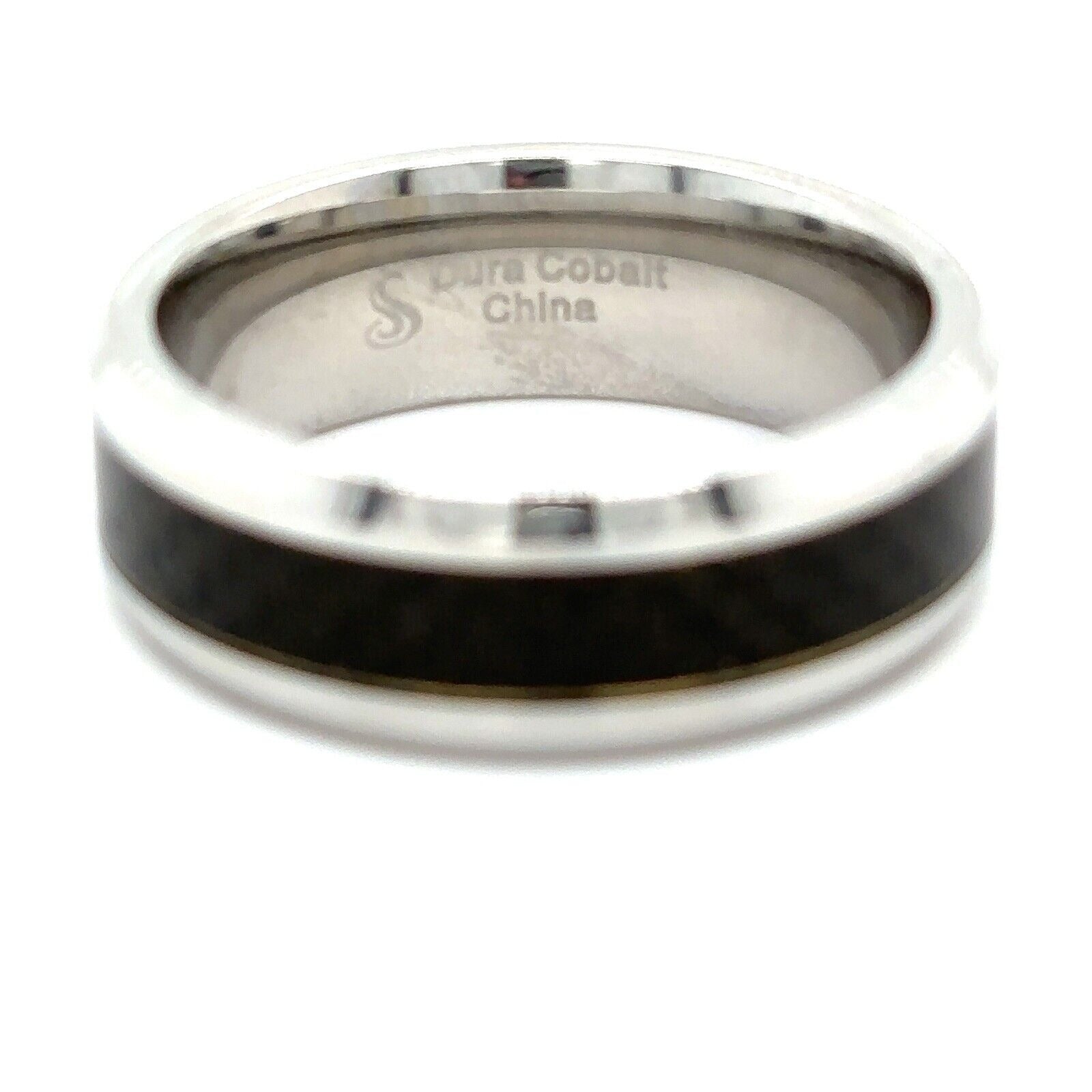 Dura Cobalt 8 mm Beveled-Edge Band With Black Carbon Fiber Inlay Size 10.5