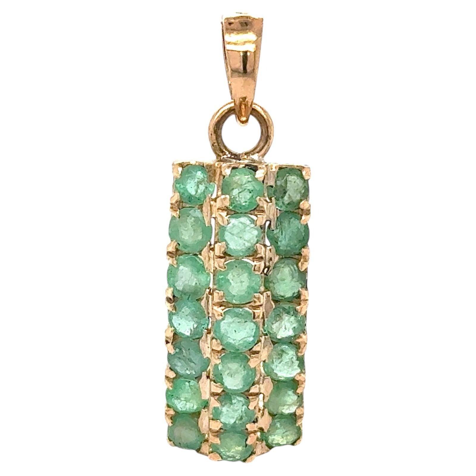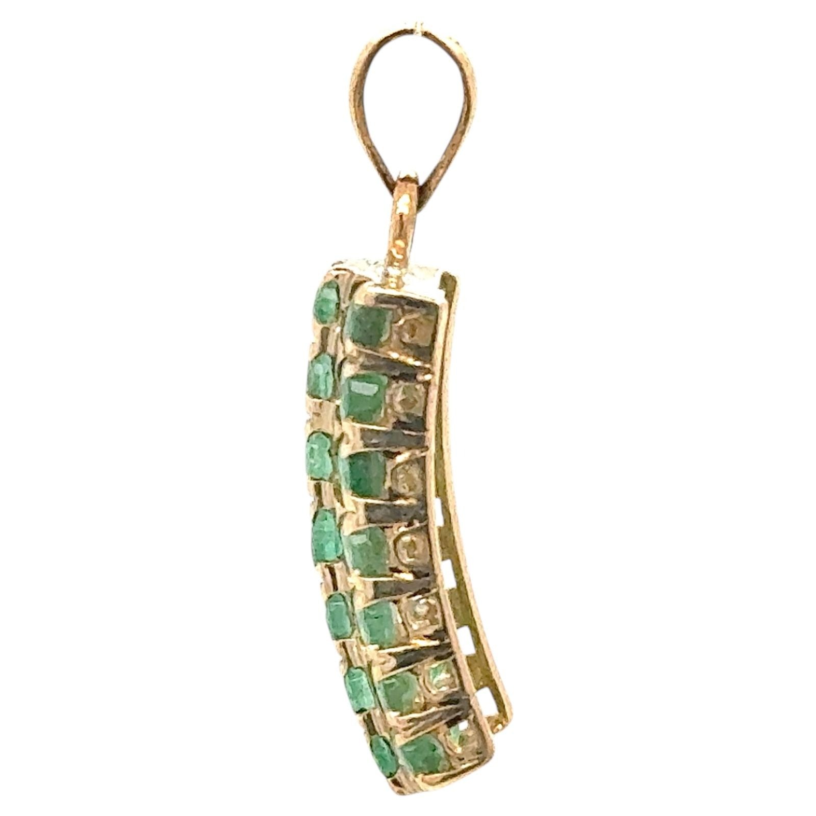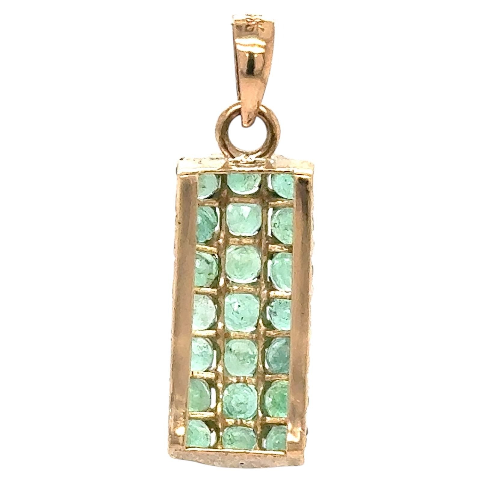 Emerald 14k Yellow Gold Bar Pendant 2.9g