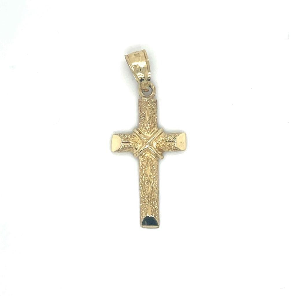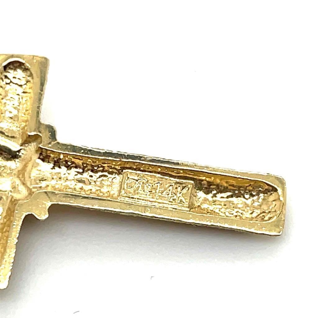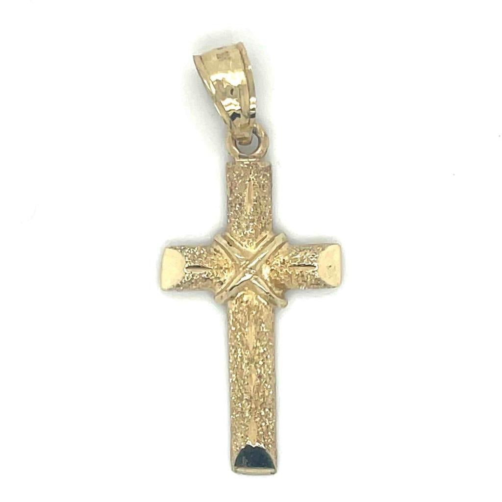 Elevate your jewelry collection with this timeless 14k yellow gold cross pendant. Featuring intricate etching and a radiant texture, it embodies both faith and elegance.