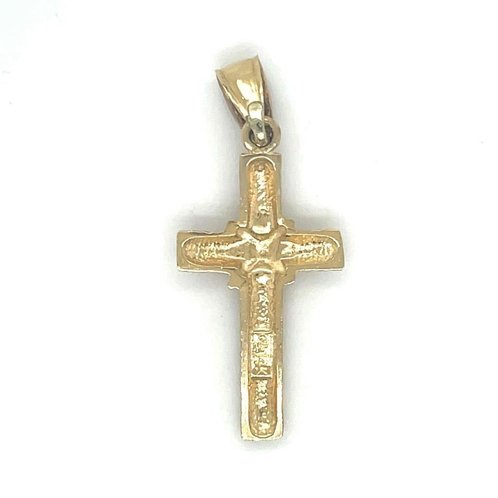 Etched Cross Pendant Solid 14k Yellow Gold 2.2g Textured Religious Charm For Necklace