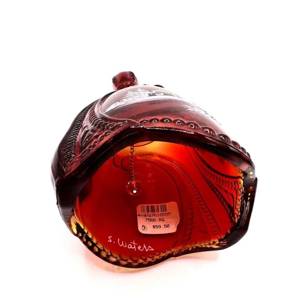 It is in the Ruby color and has the "Bethlehem" handpainted decoration with 22k gold accents and "iced" leaves on the trees.