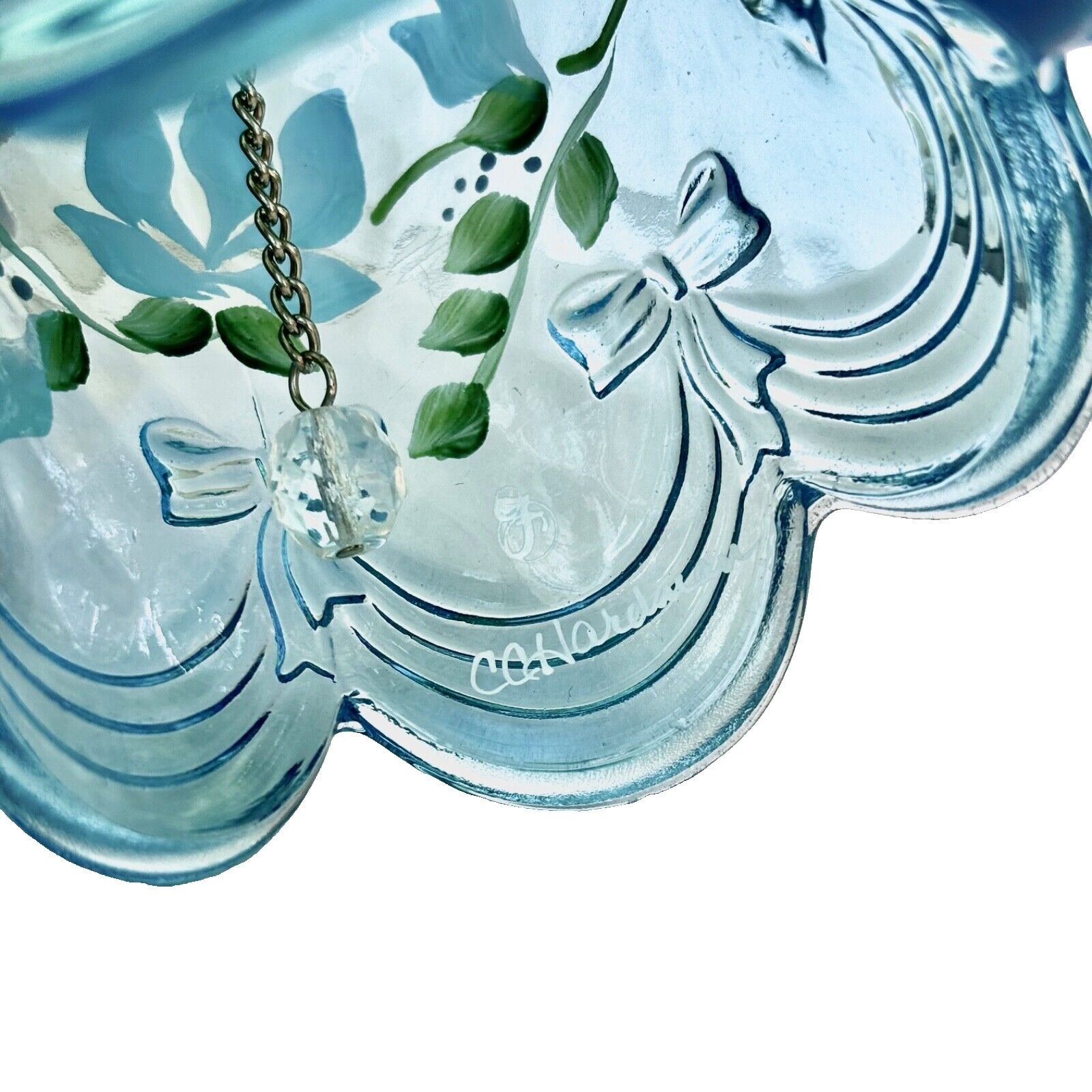 Fenton Light Blue Bell Hand painted White Floral and Signed