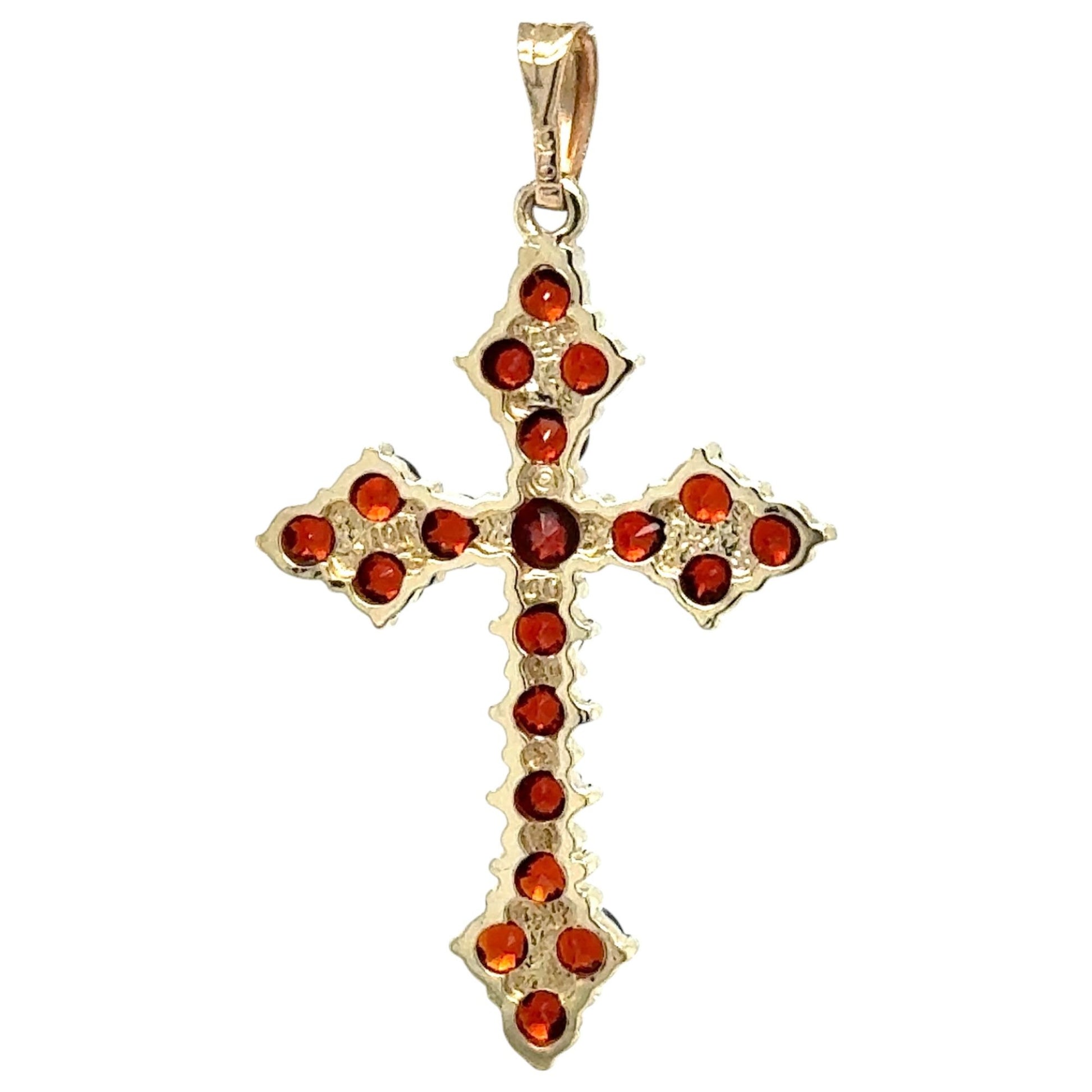 Garnet Cross 10k Yellow Gold Pendant 2.4g
