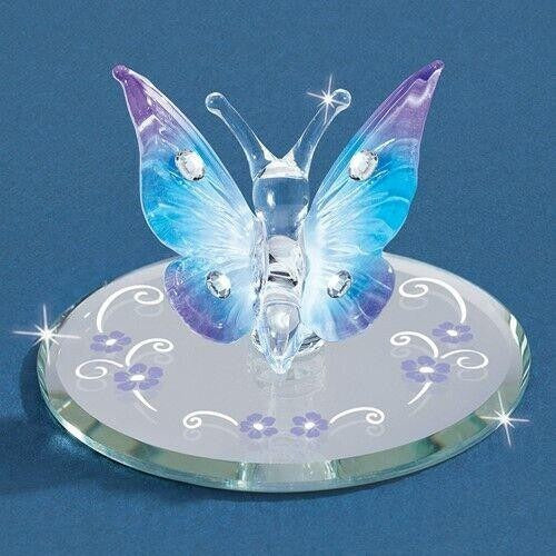 Glass Baron Blue & Purple Butterfly with Crystals Handcrafted Glass Figurine