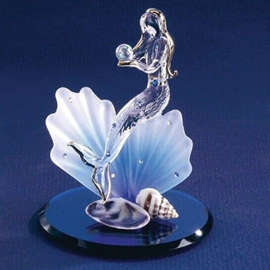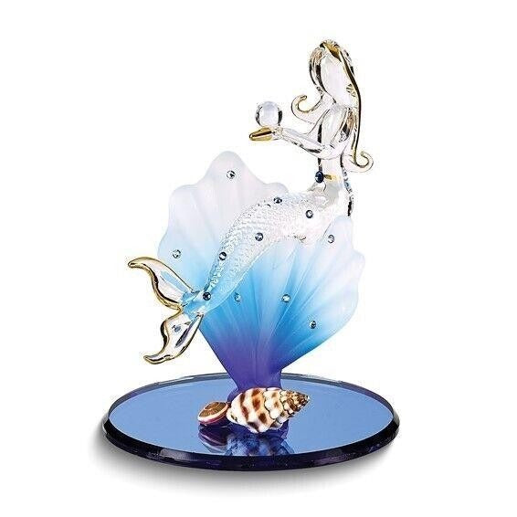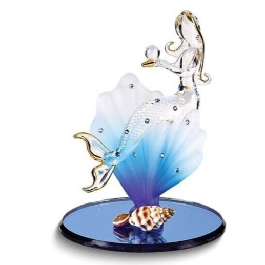 Glass Baron Mermaid on Shell Handcrafted Glass Figurine with 22k Gold Trim