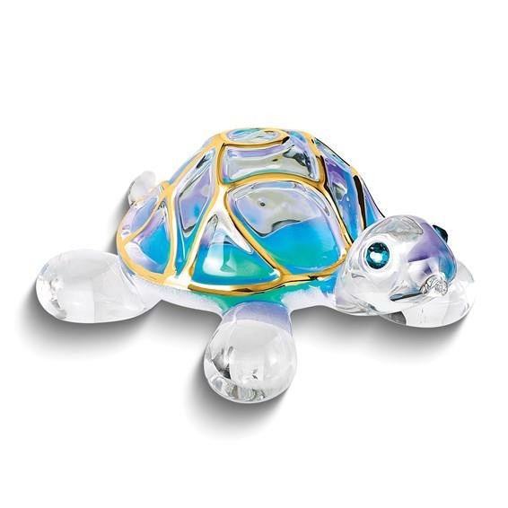 Glass Baron Tiffany the Turtle Handcrafted Glass Figurine with 22k Gold Trim