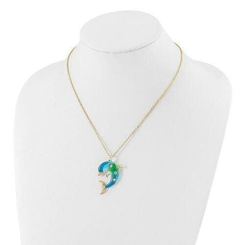 Description Beautiful Glass Baron 22K Gilding Accent Gold-trim Turquoise Glass with Crystal from Swarovski Accent Dolphin 18 inch Gold-tone Necklace