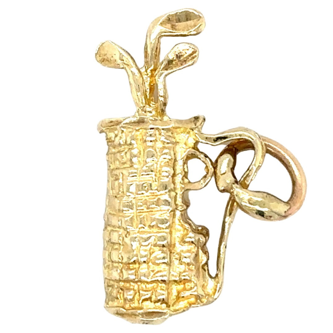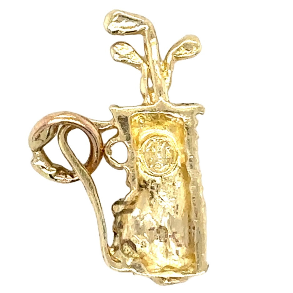 10k Yellow Gold Golf Club Bag Pendant Charm 1.6g