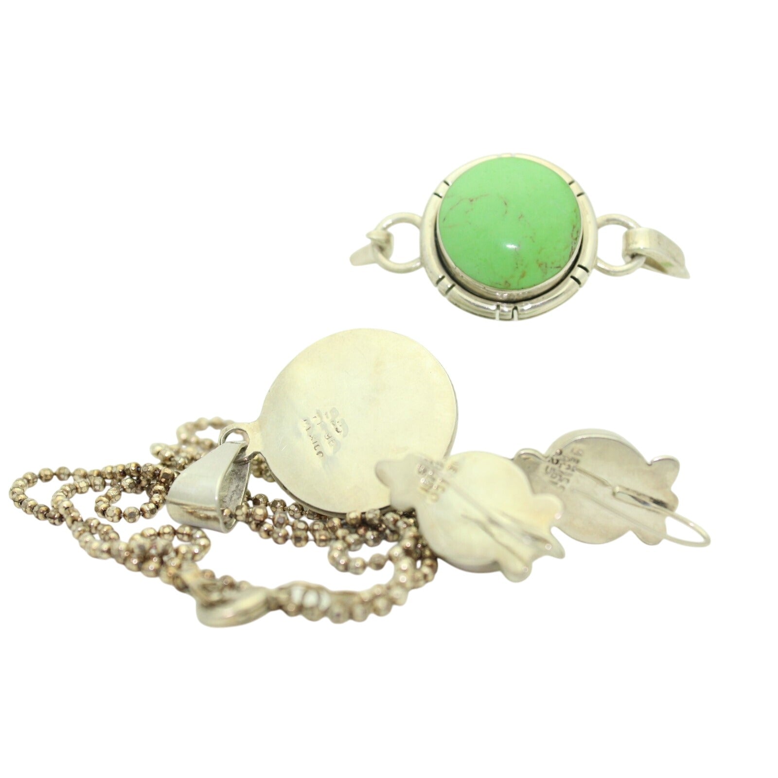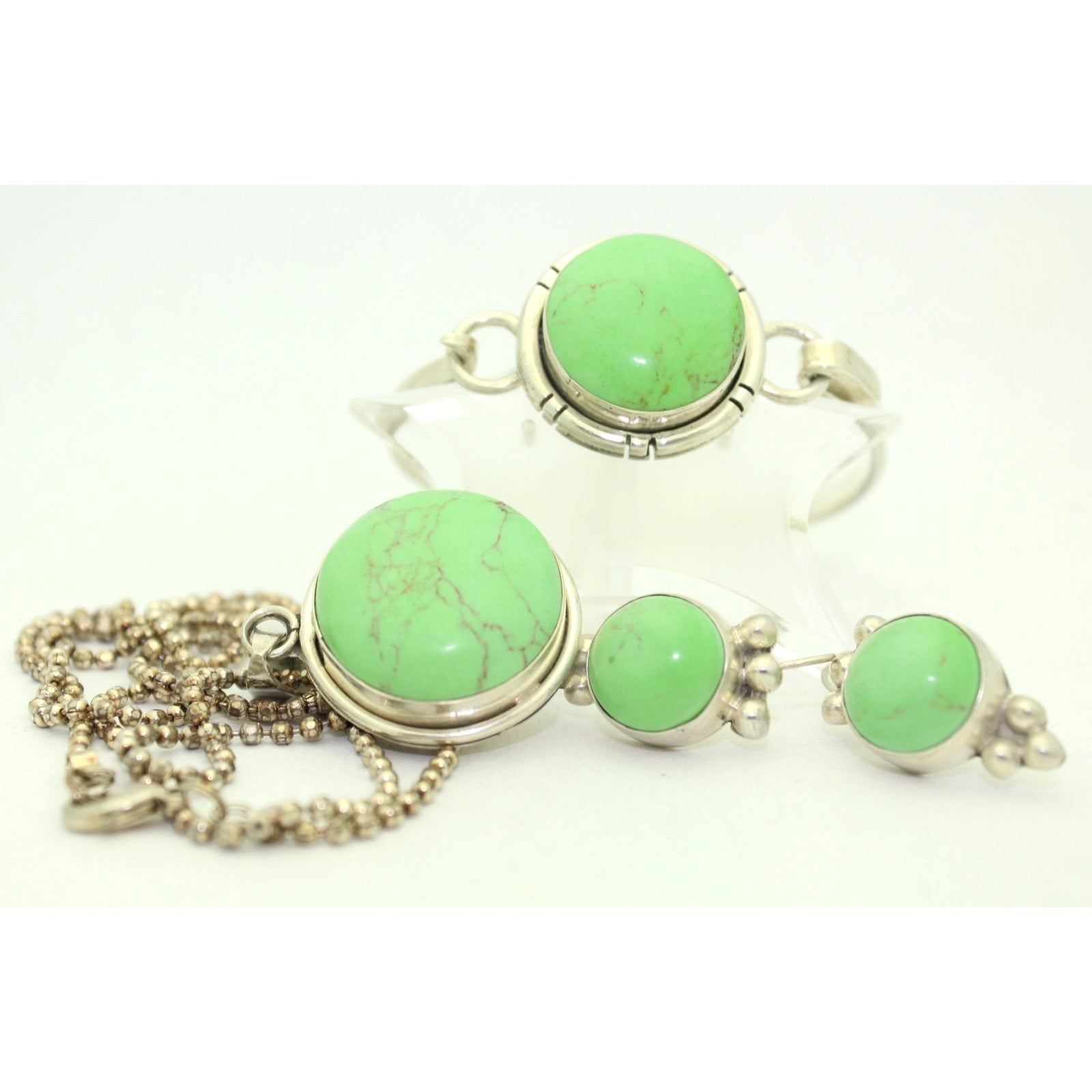 Green Variscite Pendant Necklace Bracelet & Earrings Set .925 Sterling Silver 72.2g