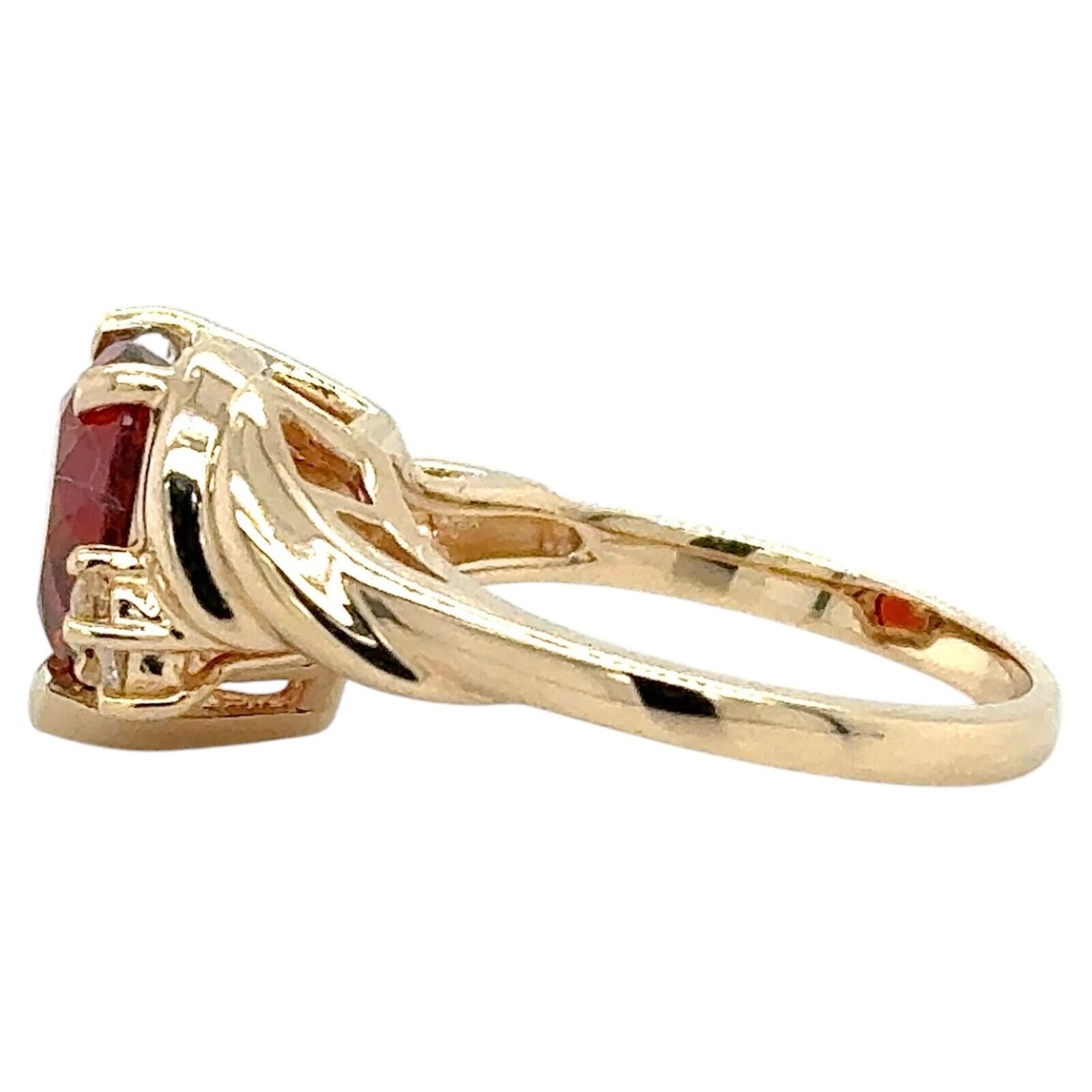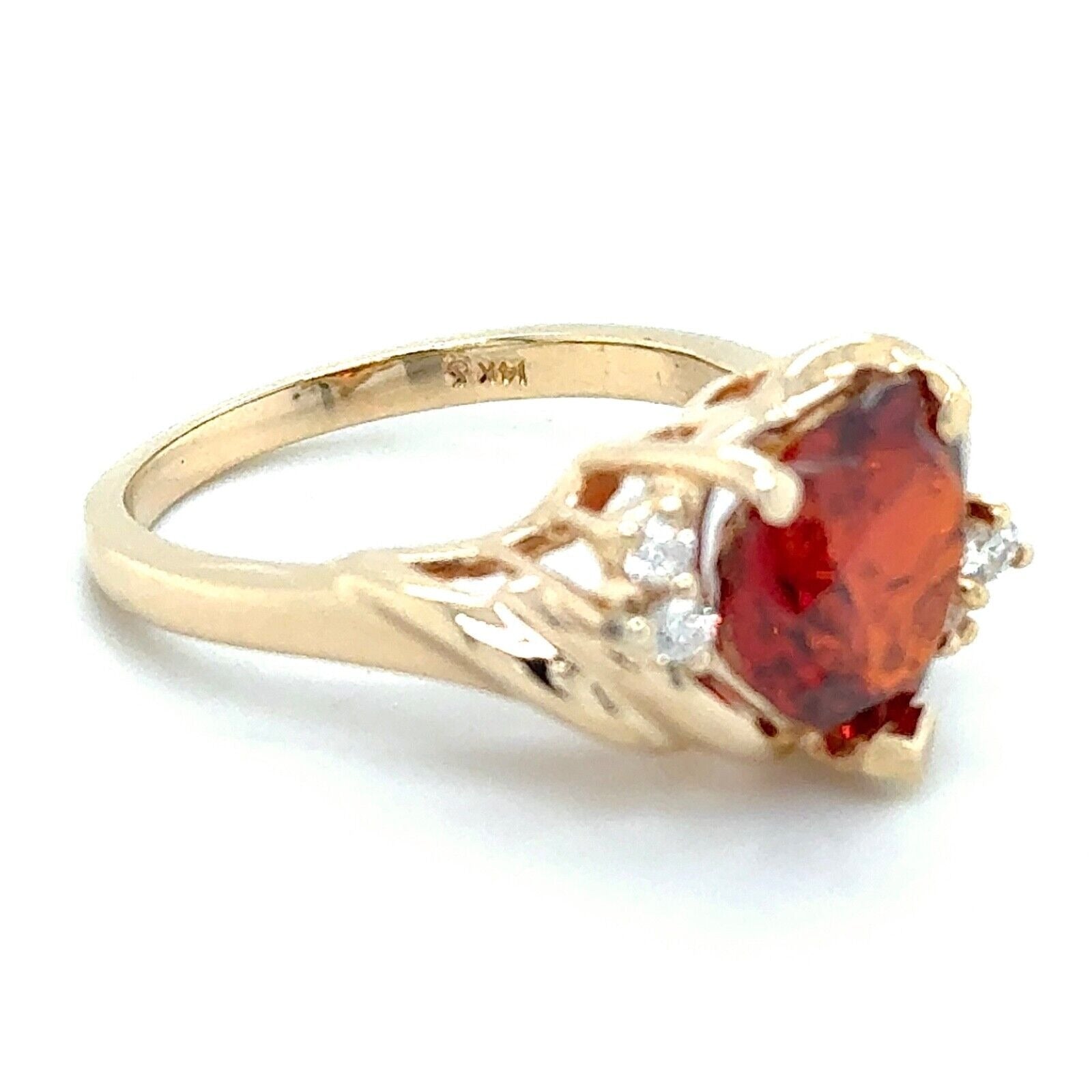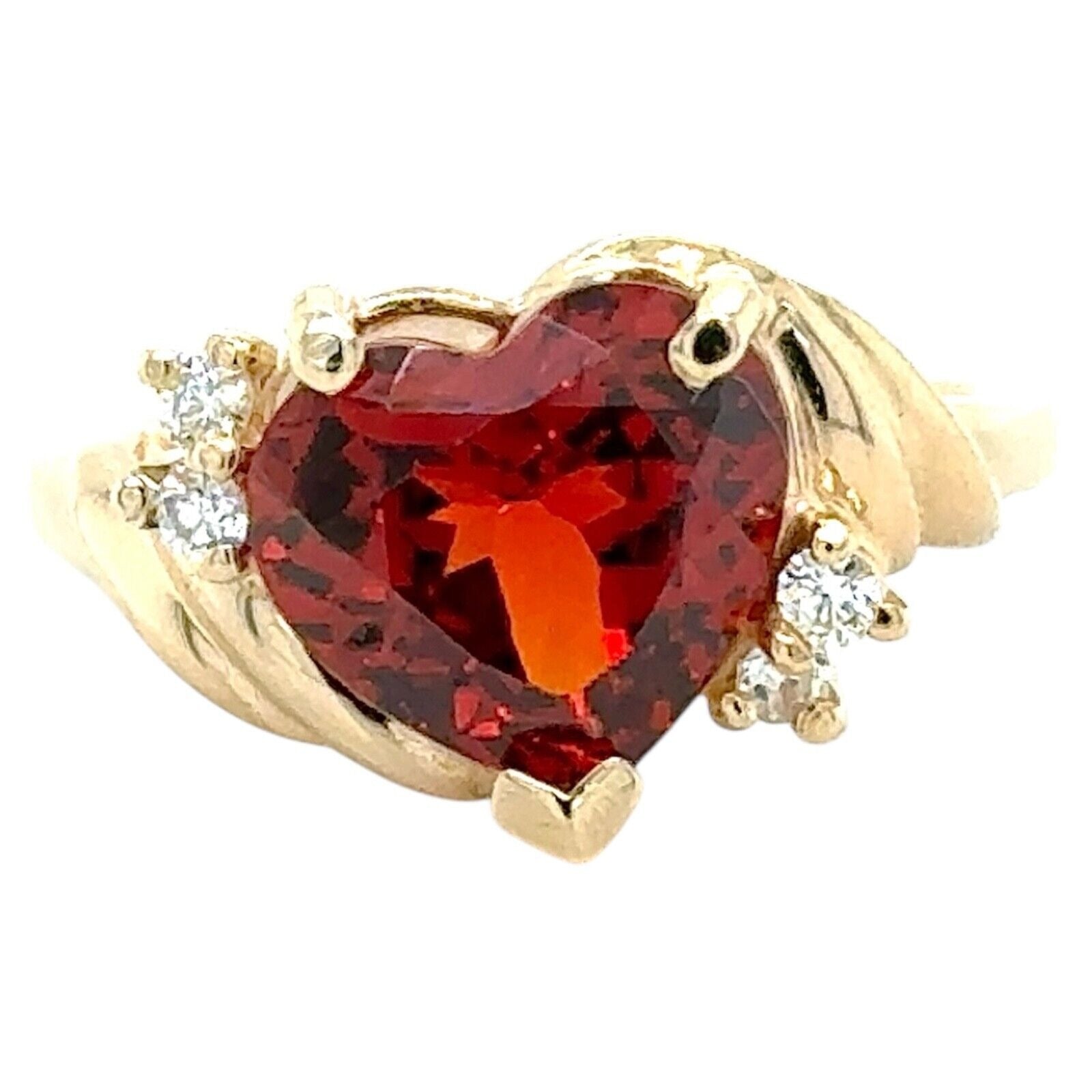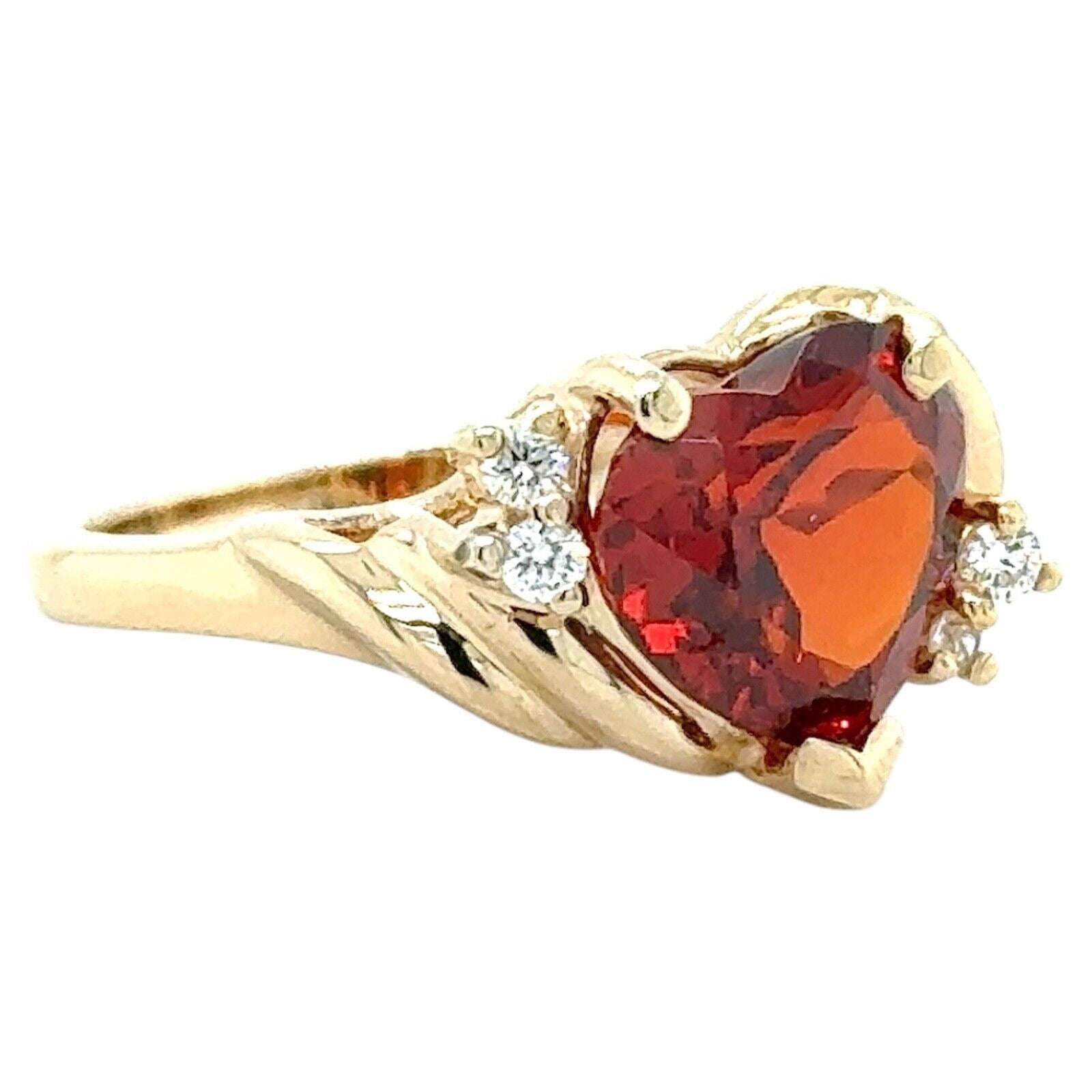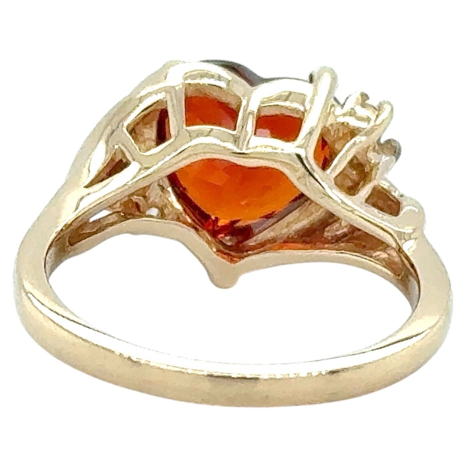 Heart Spessartite Garnet with Diamond Accents 14k Yellow Gold Ring 5.4g Size 7