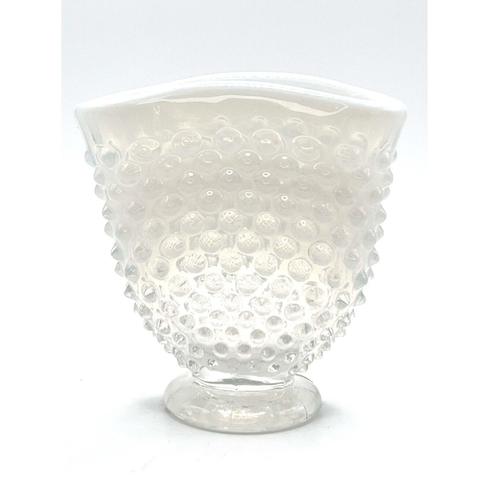 This stunning clear iridescent vase is a must-have for any art enthusiast. The hobnail design adds a touch of elegance to this original piece, making it a perfect addition to any collection. The vase is made of high-quality glass and was crafted in the United States. Its unique finish gives it a captivating shimmer that is sure to catch the eye. This vase is a great example of exquisite craftsmanship and attention to detail. Its timeless design and superior quality make it a perfect gift for any occasion. Whether you're an avid collector or simply looking for a unique piece to add to your home decor, this vase is sure to impress.