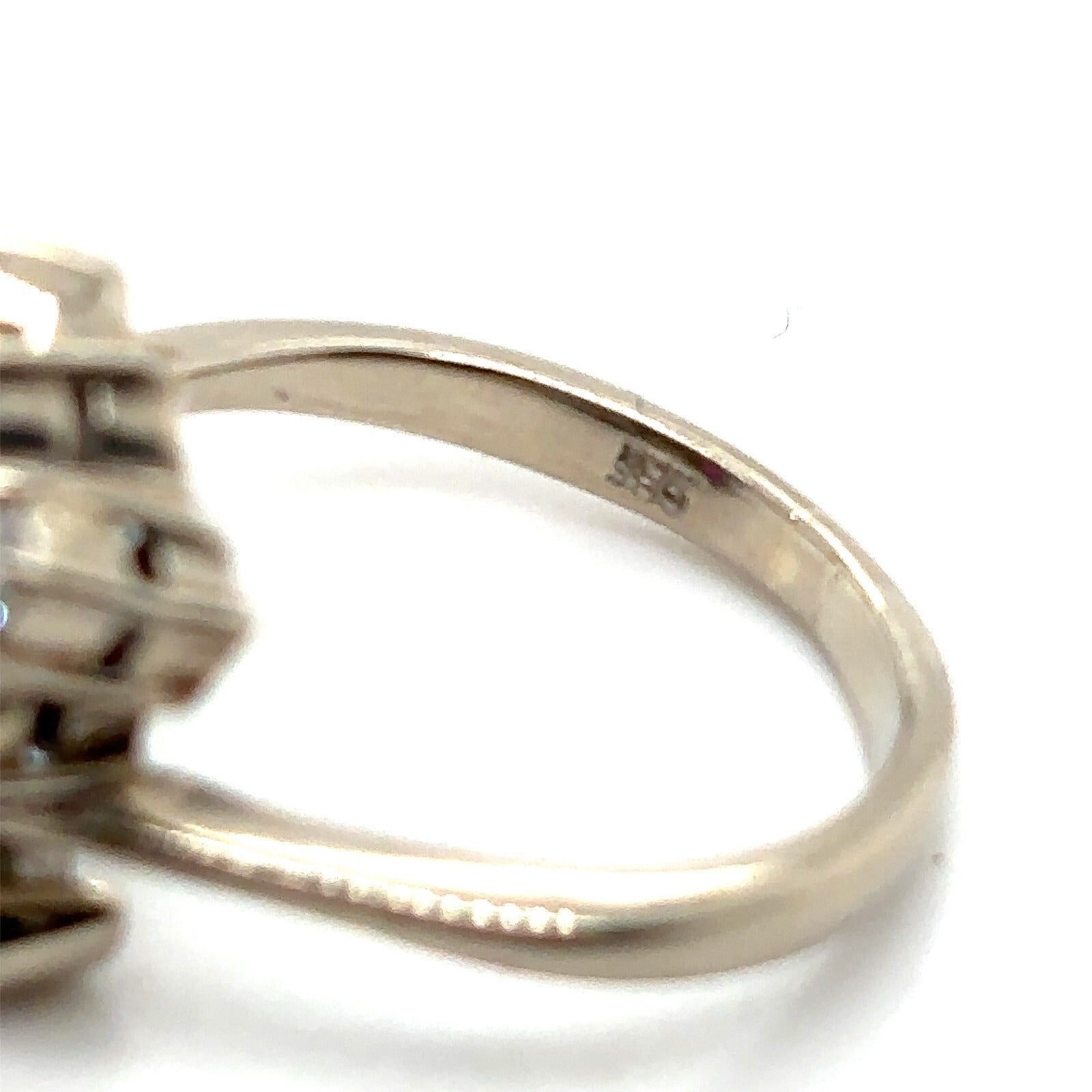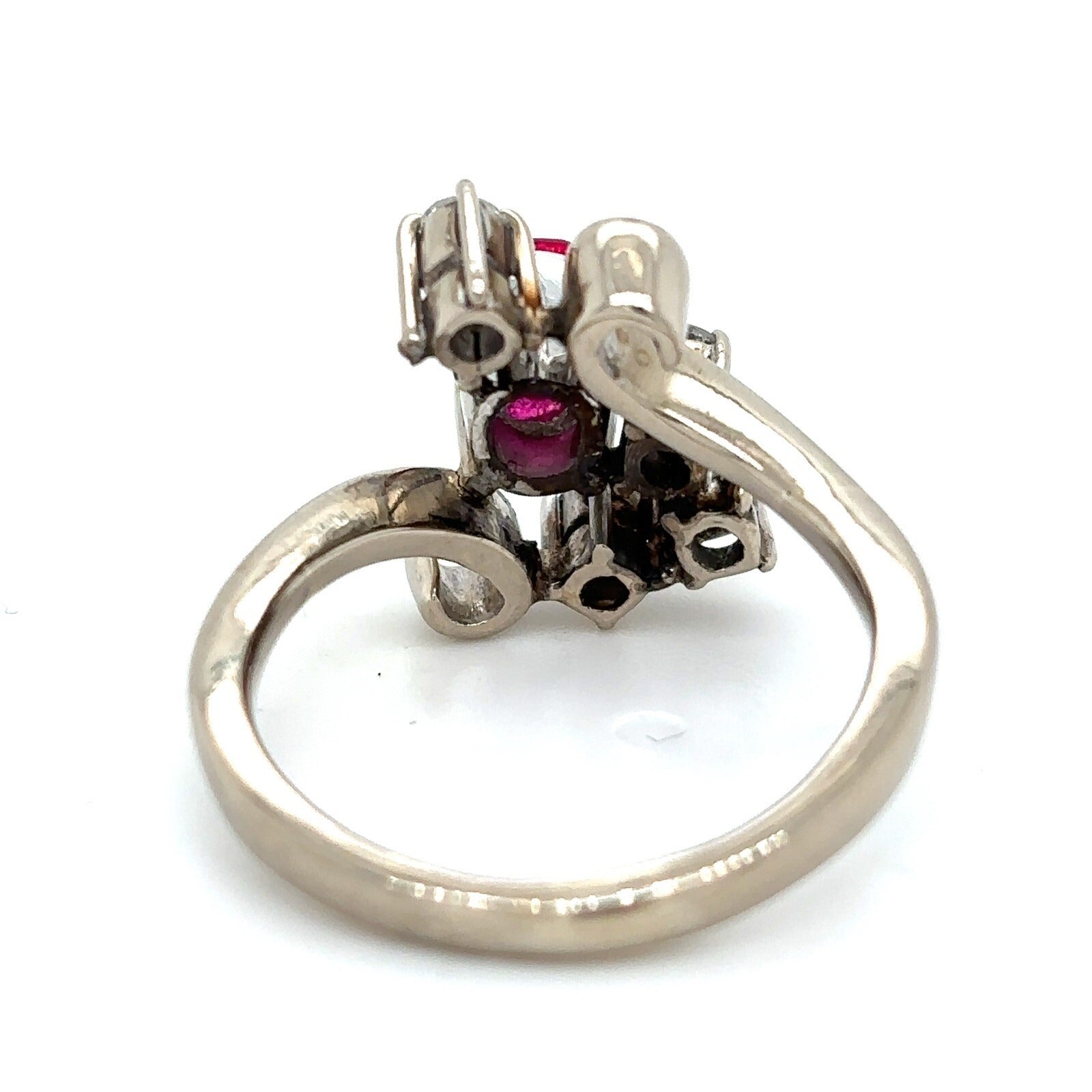 This elegant ring, crafted from 14k white gold, features a striking imitation ruby centerpiece complemented by genuine diamonds. Perfectly sized at 6, it weighs 5 grams, offering a comfortable fit without compromising on style or quality.