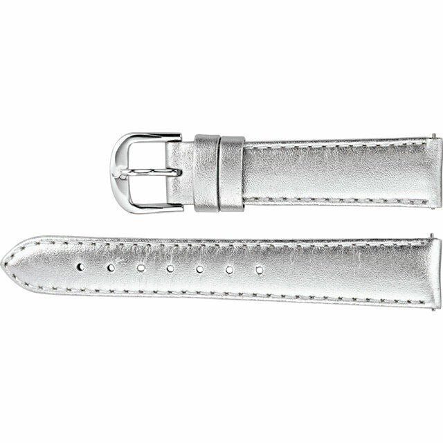 Ladies 12mm Regular Silver Leather EZ-Change™ Metallic Padded Watch Strap
