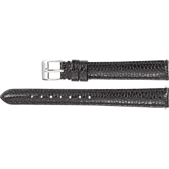 Ladies 14mm R Black Leather Lizard Grain Calfskin Padded Watch Strap Band