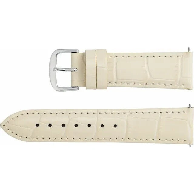 Ladies 20 mm Regular Cream Leather Alligator Grain Padded Strap Band