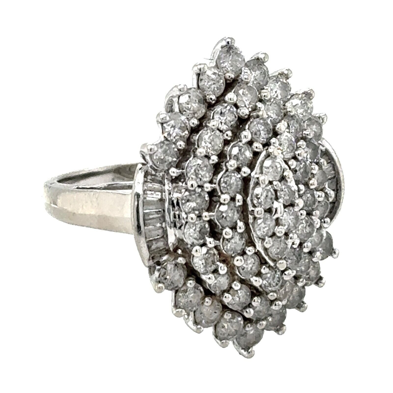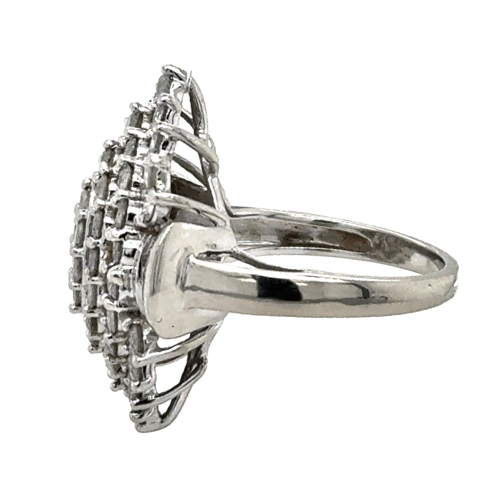 Large Diamond Cocktail Ring 10k White Gold 7.3g Size 7.25