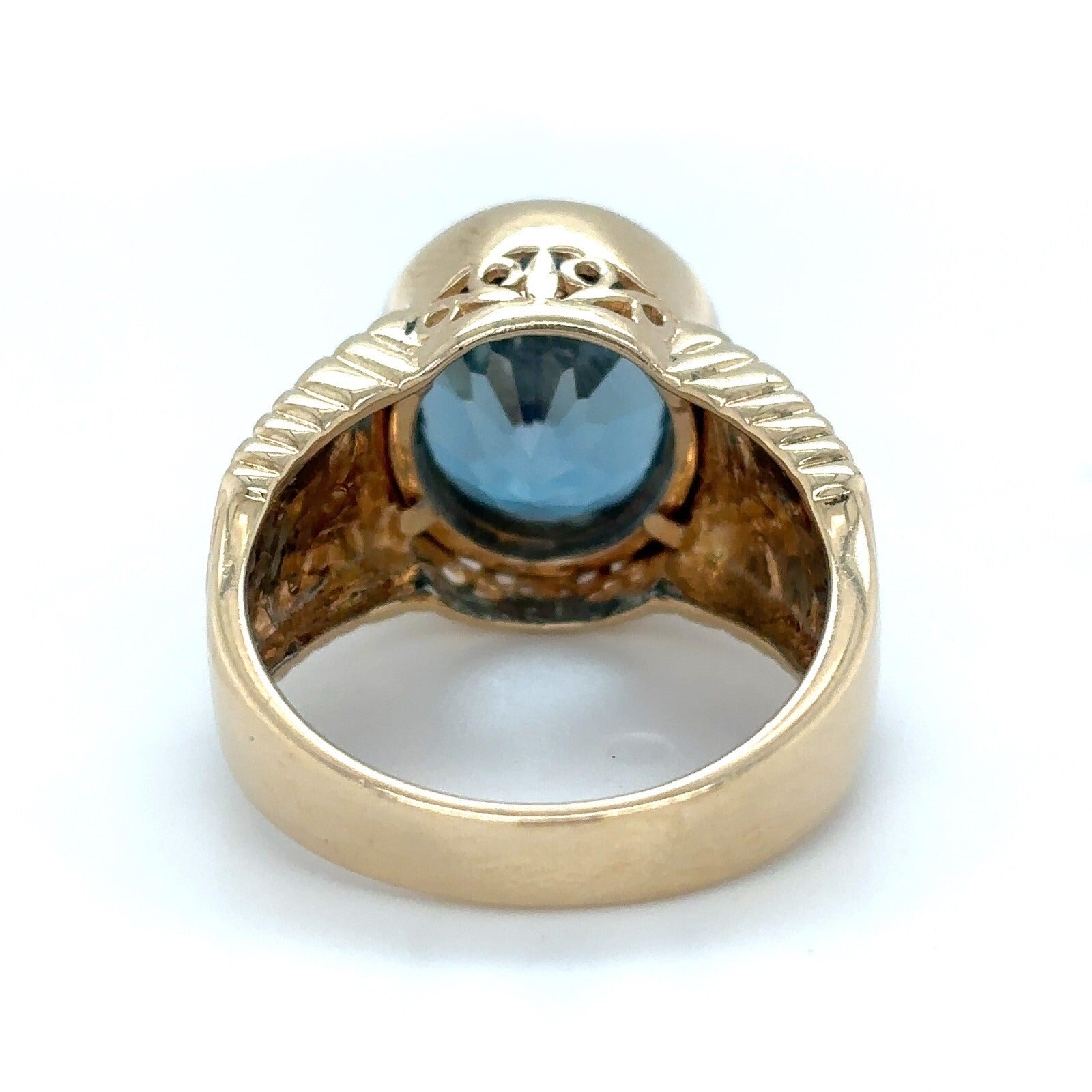 London Blue Topaz 14K Yellow Gold Ring With Intricate Design Size 7 7.7g Elegant Jewelry Piece