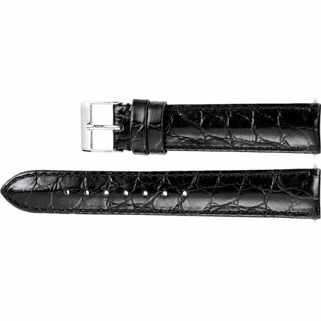 Men's 20 mm Regular Black Leather Crocodile Grain Padded Strap Band