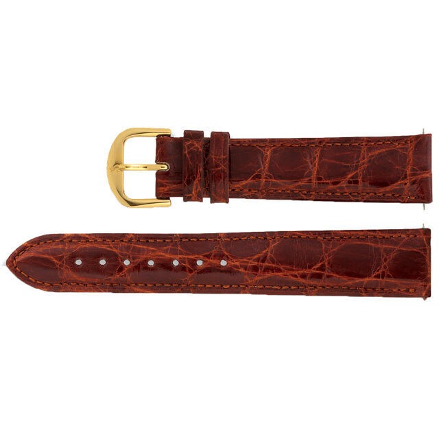 Men's 20 mm Regular Brown Leather Crocodile Grain Padded Strap Band