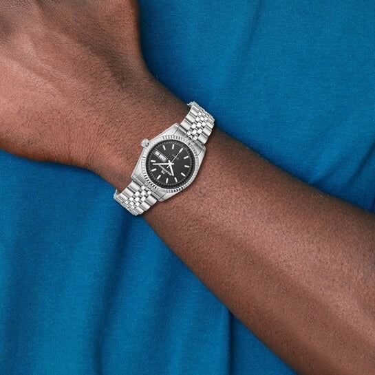 This Mount Royal wristwatch combines elegance with functionality, featuring a sleek stainless steel design and a reliable quartz movement. The watch offers a day/date display, adding to its practicality. Suited for professional settings, it also boasts water resistance, making it versatile for various occasions.