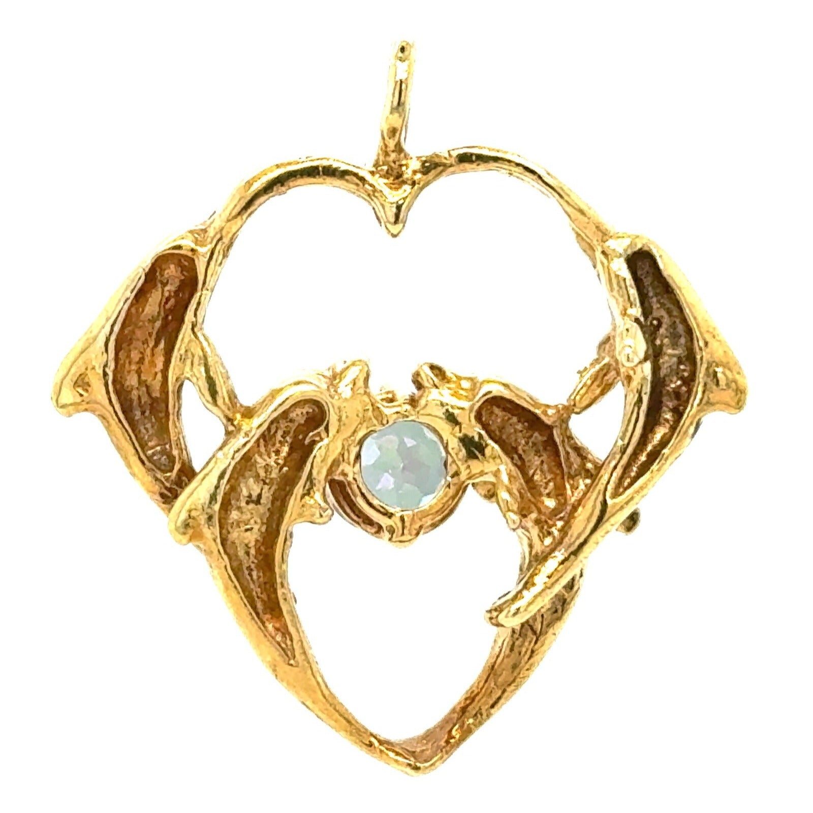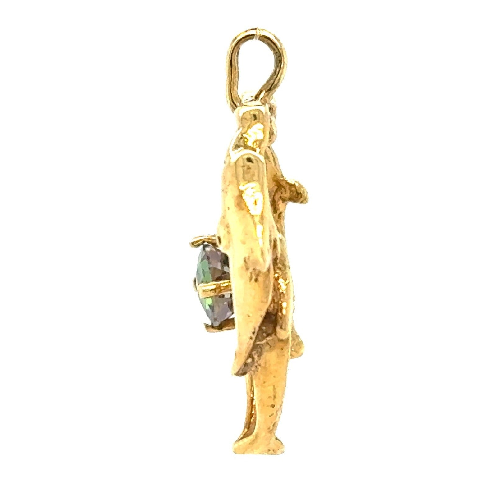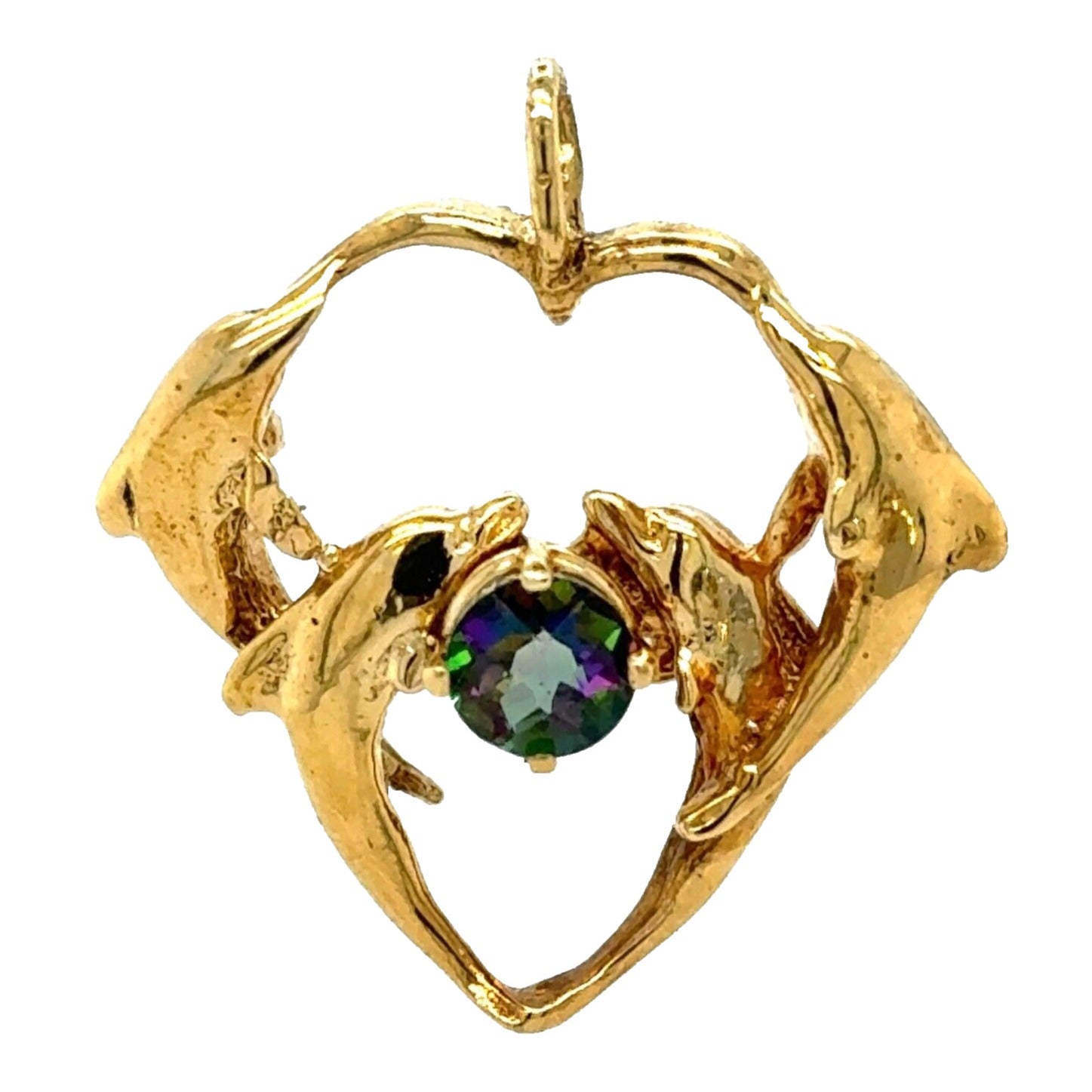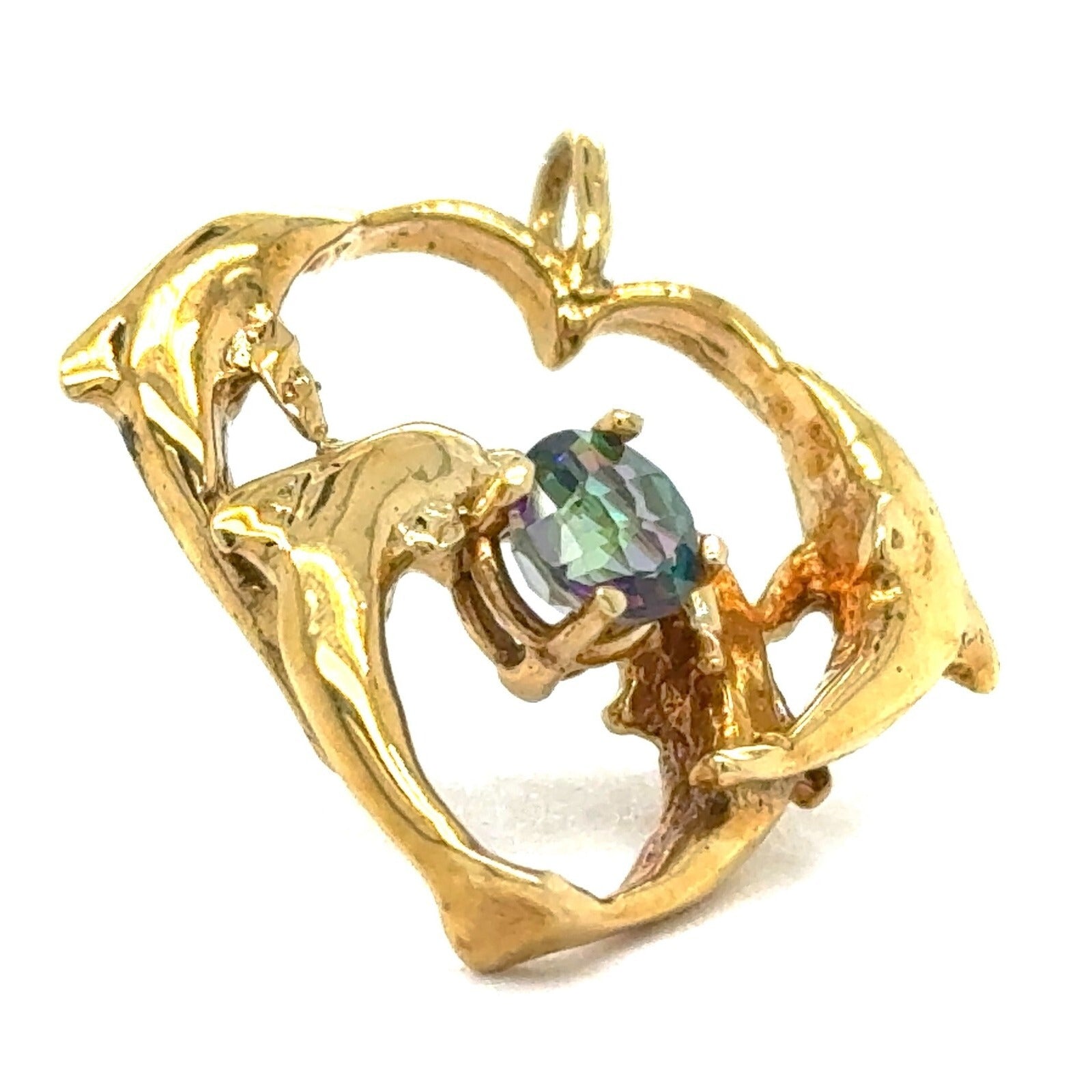 Mystic Topaz Dolphin Heart Pendant 14k Yellow Gold 6.7g