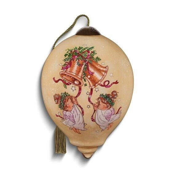 Celebrate the holiday season with this beautiful Ne'Qwa Art Bells are Ringing Wishes of Christmas ornament. Crafted with care and precision, this medium-sized glass ornament features a hand-painted design that captures the essence of the season. The ornament comes with a gift box, making it a perfect gift for your loved ones. This original and licensed reproduction ornament is part of the Angel franchise and is perfect for any Christmas occasion. The ornament measures 3 inches in length and 2 inches in width, making it a great addition to any ornament collection. Add this unique piece to your collection today and enjoy the beauty and serenity it brings to your home.