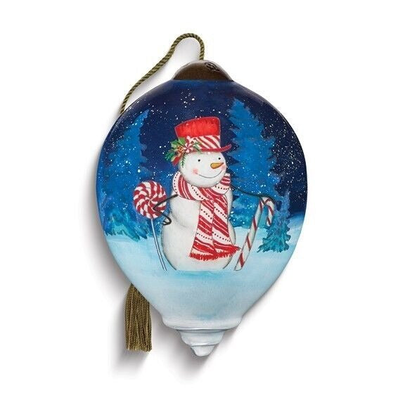 Add a touch of holiday magic to your Christmas tree with this beautiful Ne'Qwa Art Peppermint Wonderland glass ornament. Hand-painted with intricate details, this medium-sized ornament features a charming snowman design in shades of blue. Crafted from high-quality glass, it measures 2.5 inches in length, height, and width. This antique-style ornament is a perfect addition to your collection of ornaments and makes for a great gift. It was manufactured in 2022 and features a production style of art glass. The set includes one item, and it is handmade with care. Get ready to wonderland with this unique and stunning piece of art.