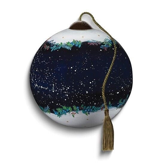 Celebrate the season with this beautiful hand-painted glass ornament from Neqwa Art. Featuring the beloved nativity characters of Jesus, Mary, and Joseph, this medium-sized round ornament is perfect for adding to your Christmas tree or collection of ornaments. The intricate details and use of vibrant colors make this ornament a true work of art. Crafted with care using hand blown glass production technique, this ornament is a one-of-a-kind addition to your decor. Measuring 3 inches in height and 2 inches in width, this ornament is perfect for displaying on a shelf or in a basket. Add this Neqwa Art Rejoice In His Glory ornament to your collection today and enjoy its beauty for years to come.