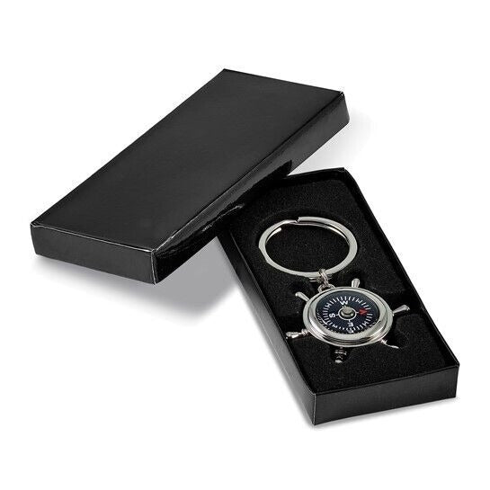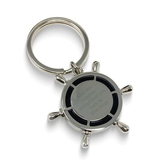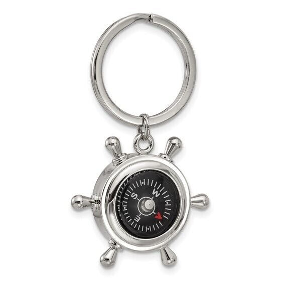 Nickel-Plated Compass and Ships Wheel Key Ring