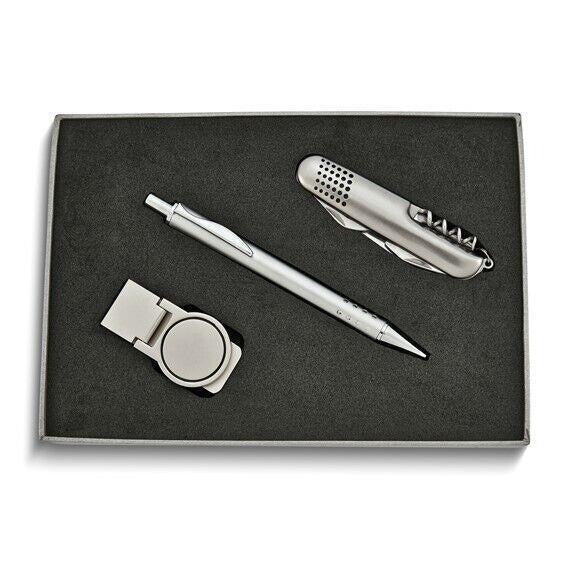 Description NEW Pen, Multi-function Knife and Round Money Clip 3-piece Gift Set