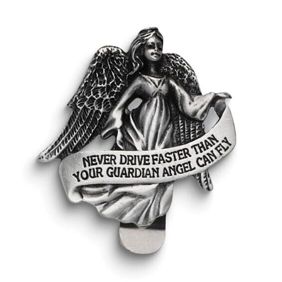 Pewter Finish GUARDIAN ANGEL Visor Clip Never Drive Faster