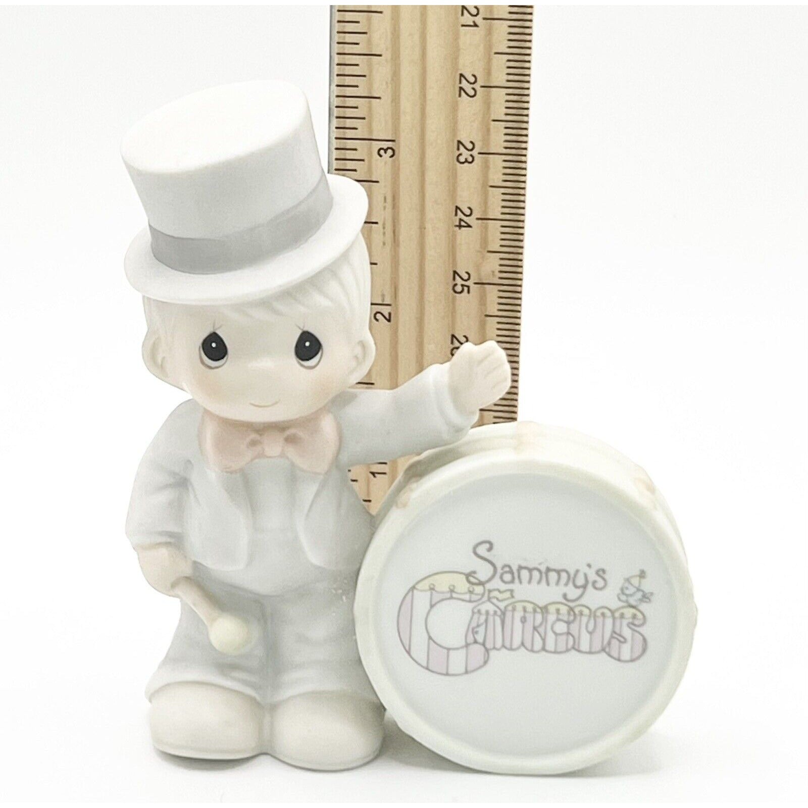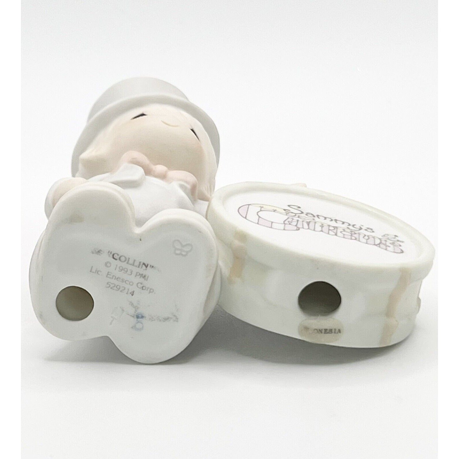 This Precious Moments figurine is a must-have for collectors. It features Sammy's Circus "Collin" design, created in 1993. The multicolor figurine is an original piece and is unboxed. Perfect for all occasions, it is a great addition to any collection. The subject of the figurine is a boy, and it is a part of the Precious Moments collection. This item is perfect for those who love decorative collectibles and sculptures.