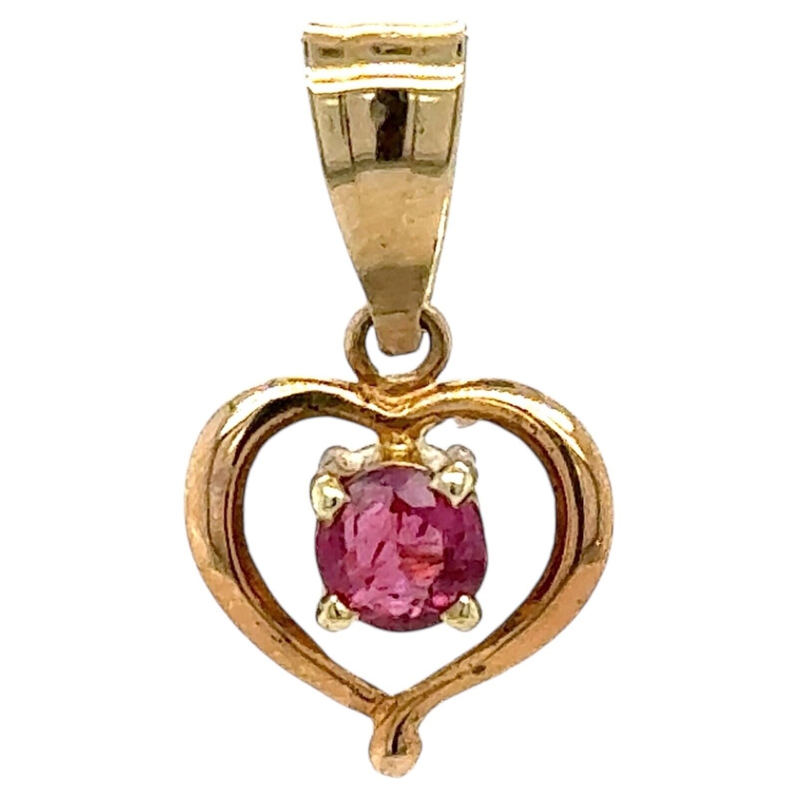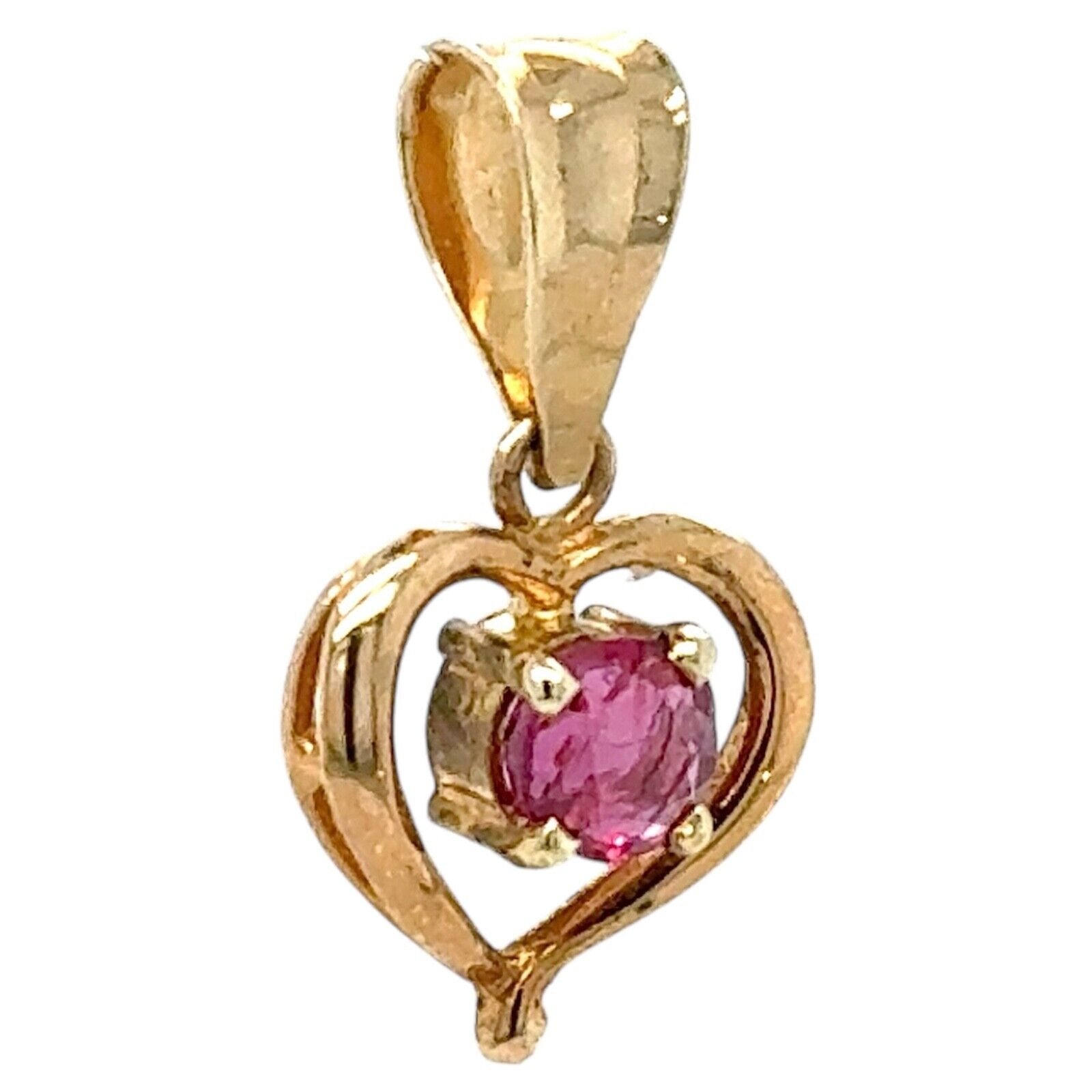 Ruby Solitaire 14k Yellow Gold Heart Pendant 1.1g