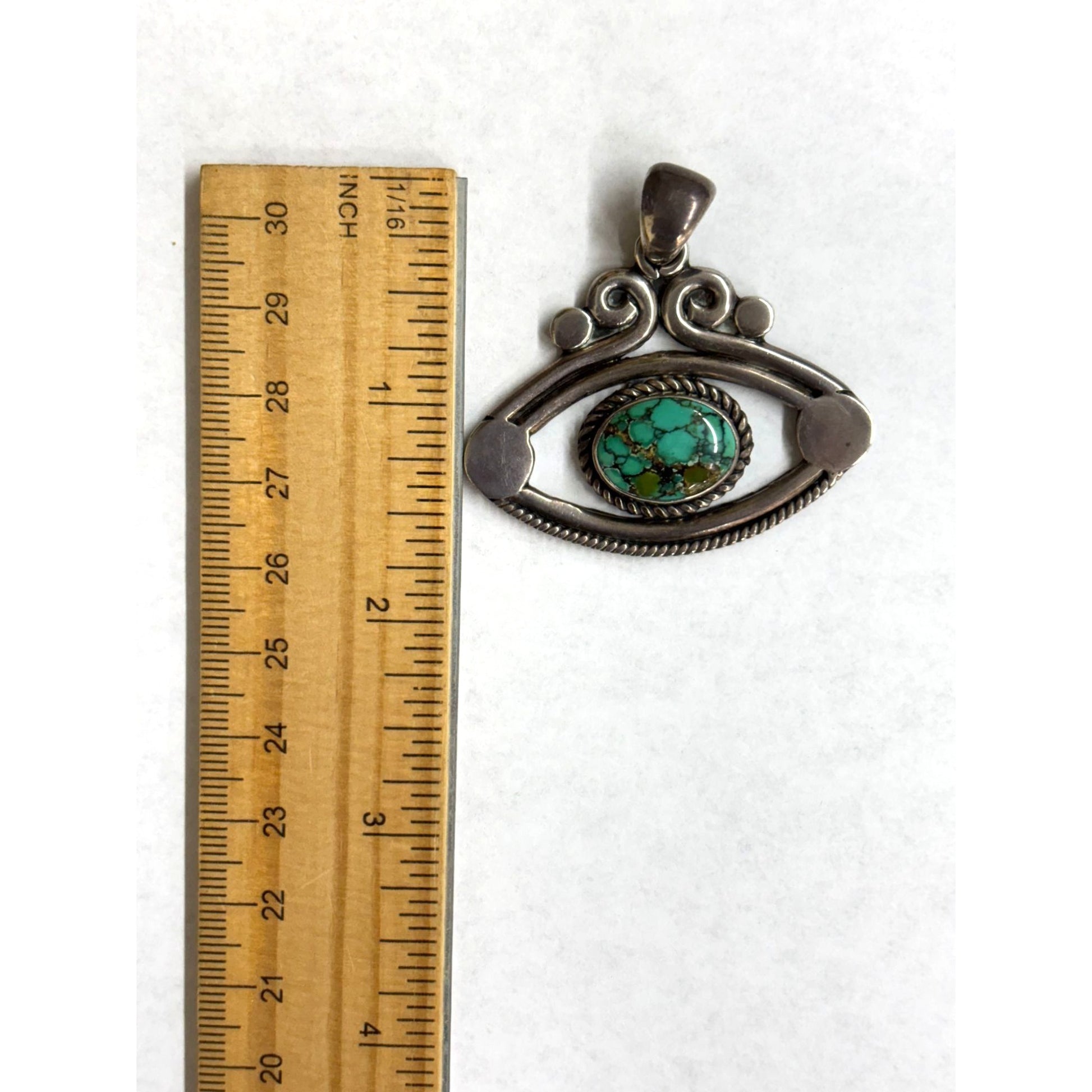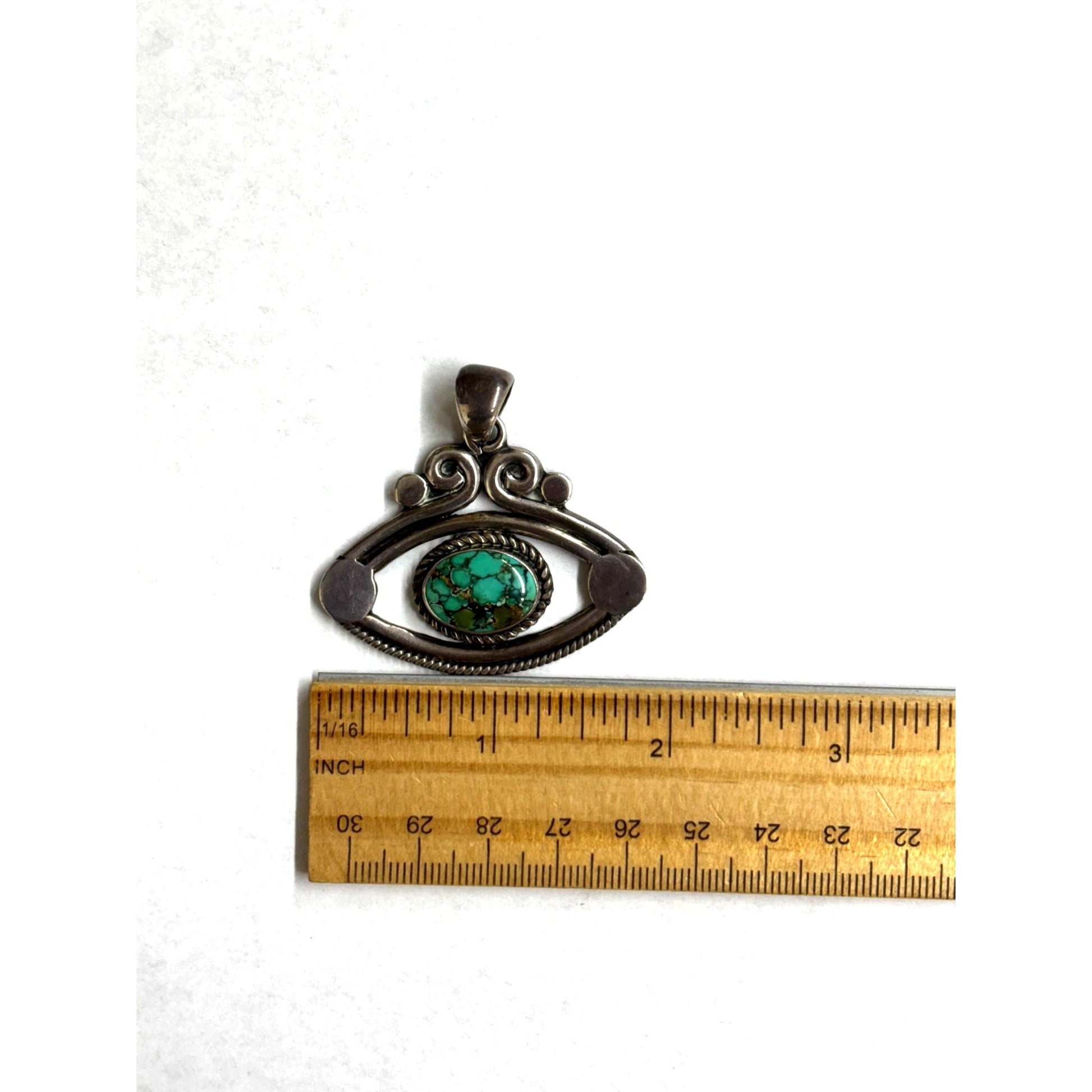 Silver Evil Eye Pendant With Turquoise Stone 18.6g Boho-Style Jewelry Handmade