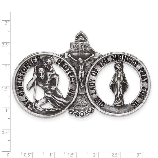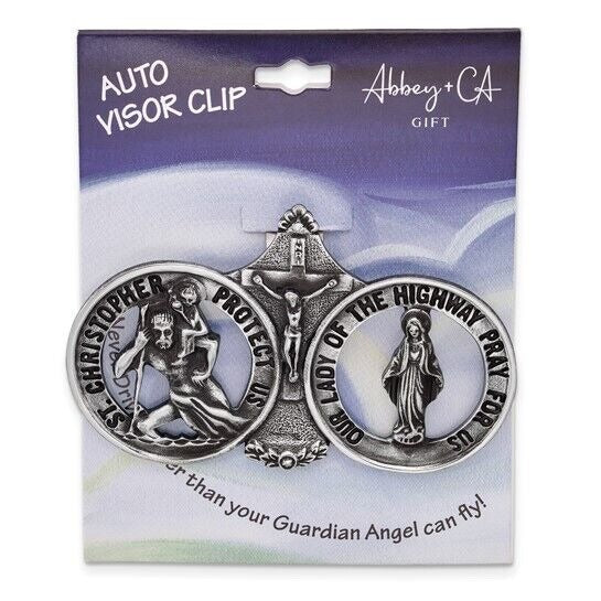 Silver-tone St. Christopher and Our Lady of the Highway Visor Clip